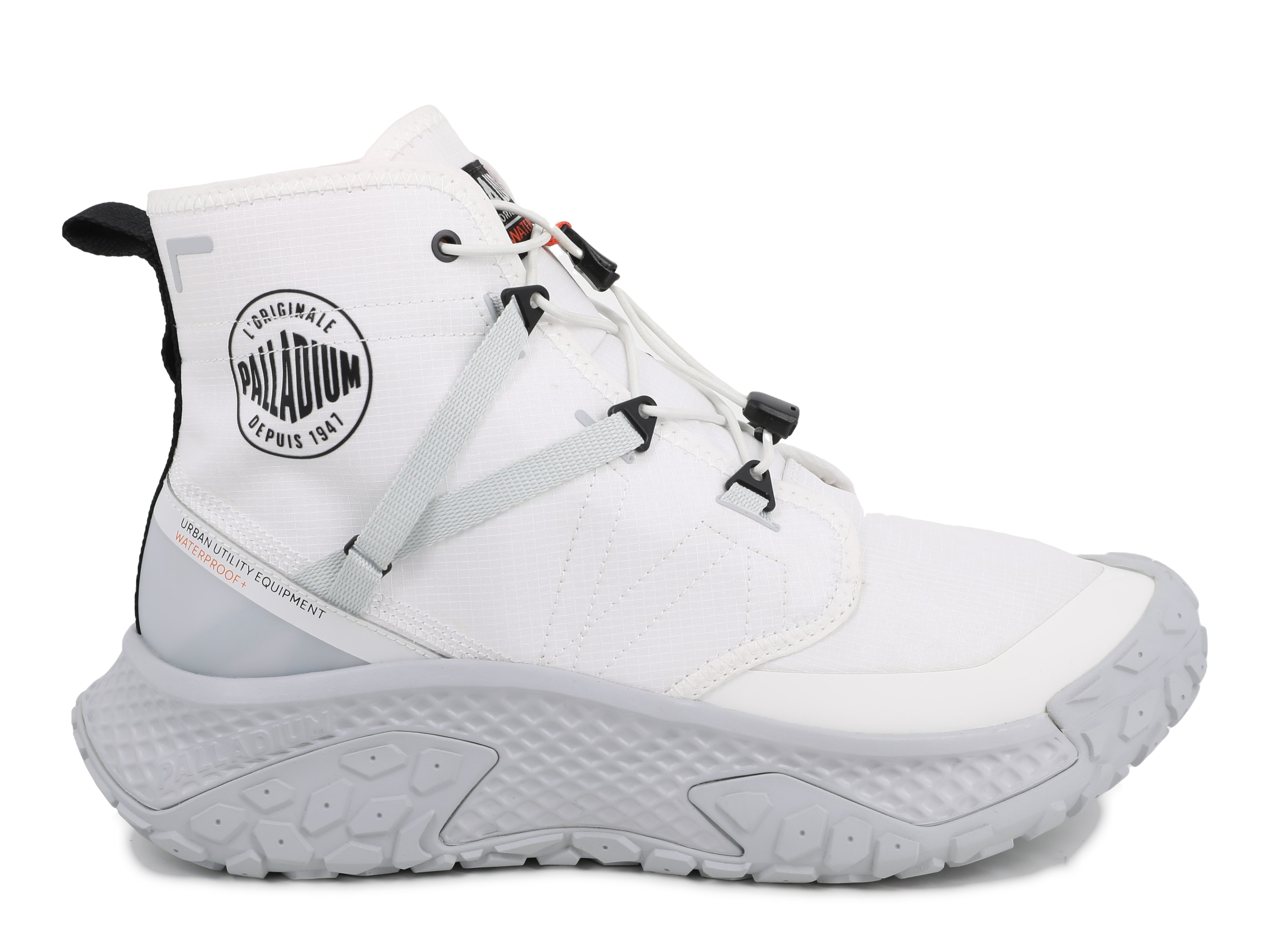 PALLADIUM 全新橘標防水 OFF_BOUND HI 系列,首雙高筒設計增添造型個性與層次感並提供全面防護,延續波浪大底滾動感設計,注入更多時尚輪廓與街頭感,5mm 掌跟差設計帶來卓越舒適度,即使長時間行走或「上萬步」也不易疲勞,兼具日常與戶外行動所需的支撐與靈活性。耐磨橡膠、EVA彈性中底以及凹槽與不定向菱紋顆粒排列,不僅提升抓地力與耐磨性,也能輕鬆應對城市街道與多變地形。在配色上,特別以冰河灰與沙漠色作為主打,呈現柔和而明亮的街頭個性,輕鬆完成多場景穿搭。