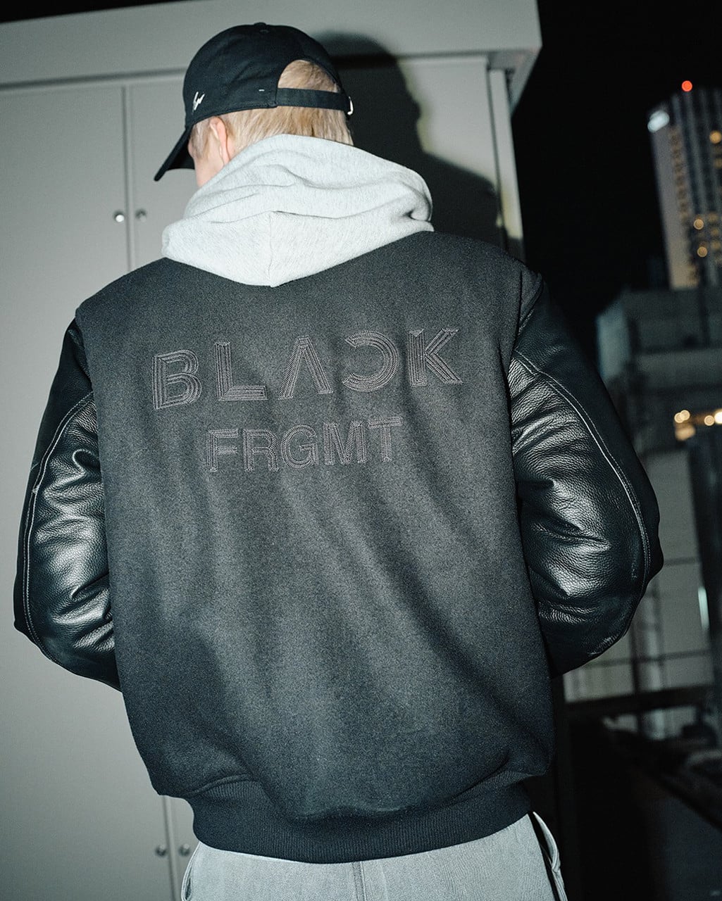 最後登場的黑白配色棒球外套則是整個系列的視覺焦點,黑色主體搭配白色衣袖,袖子、背部及胸前均印有清晰可辨的品牌識別圖騰。這件外套融合了美式運動風與日式街頭美學,無論是版型剪裁或配色選擇,都展現出藤原浩對細節的極致追求。從材質選用到圖案配置,每個環節都透露出 fragment design 的設計哲學,以最少的元素創造最大的視覺張力。