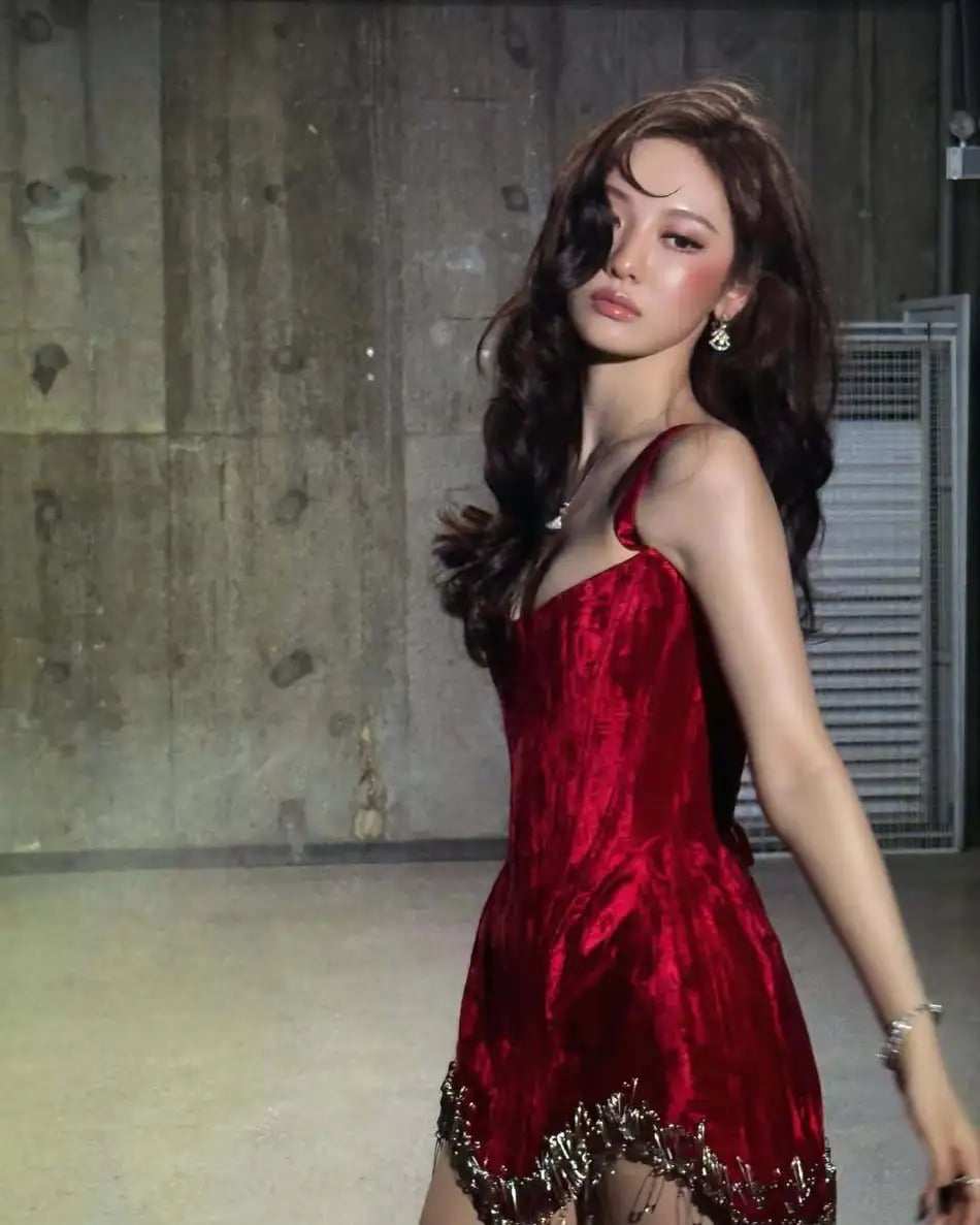 金唱片頒獎典禮(Golden Disc Awards)10 日晚間震撼登場,現場除了精彩表演,最引發熱議的絕對是女神間的火辣對決!BLACKPINK 成員 Jennie 這次簡直是「造型教科書」,紅毯先以全紅禮服壓軸登場震撼全場,接著進場與表演環節又光速切換風格,誠意十足地連換 3 套戰袍,讓現場 3.3 萬名觀眾看看到下巴都快掉下來。不過,最讓網友瘋狂討論的卻是 Jennie 的第二套造型。這件酒紅色抹胸短洋裝,大方展現了 Jennie 絕美的肩頸線條與招牌大長腿,搭配大捲髮造型簡直性感炸裂。但眼尖的網友馬上抓包,這套造型竟然撞衫了 aespa 的成員寧寧(Ningning)!據悉,寧寧早在去年 4 月拍攝雜誌時就穿過同款洋裝,就連髮型也幾乎神同步,唯一的差別只有 Jennie 是偏中分,而寧寧則是旁分大捲髮。