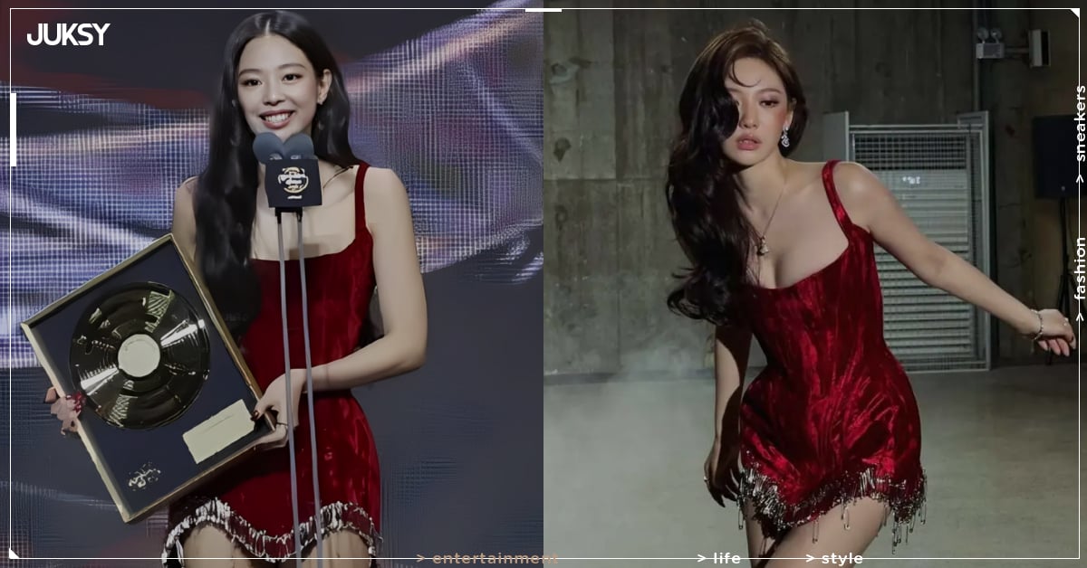 BLACKPINK 成員 Jennie 於 10 日晚間在金唱片頒獎典禮華麗亮相,一人連換三套絕美戰袍成為全場焦點。其中進場穿著的酒紅色短洋裝,被眼尖網友發現竟撞衫 aespa 成員寧寧(Ningning),連髮型都高度相似。