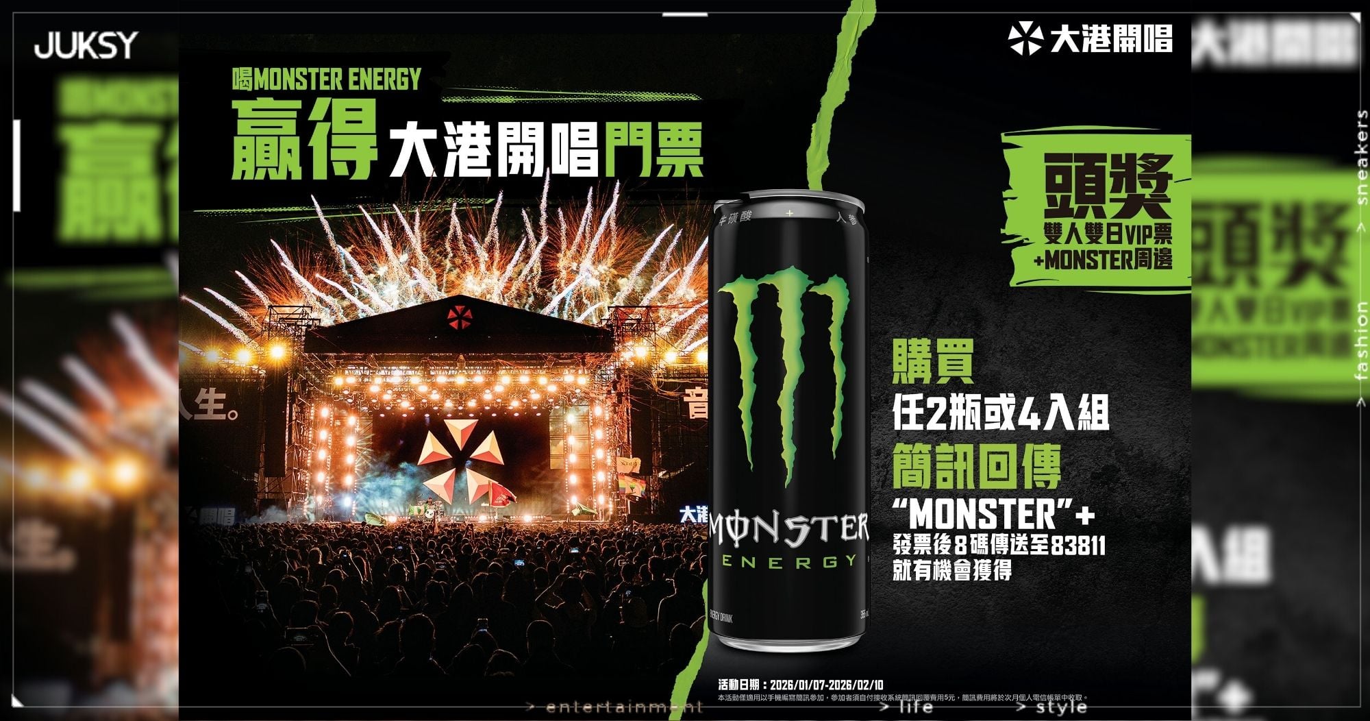 2026喝Monster Energy®贏得大港開唱門票