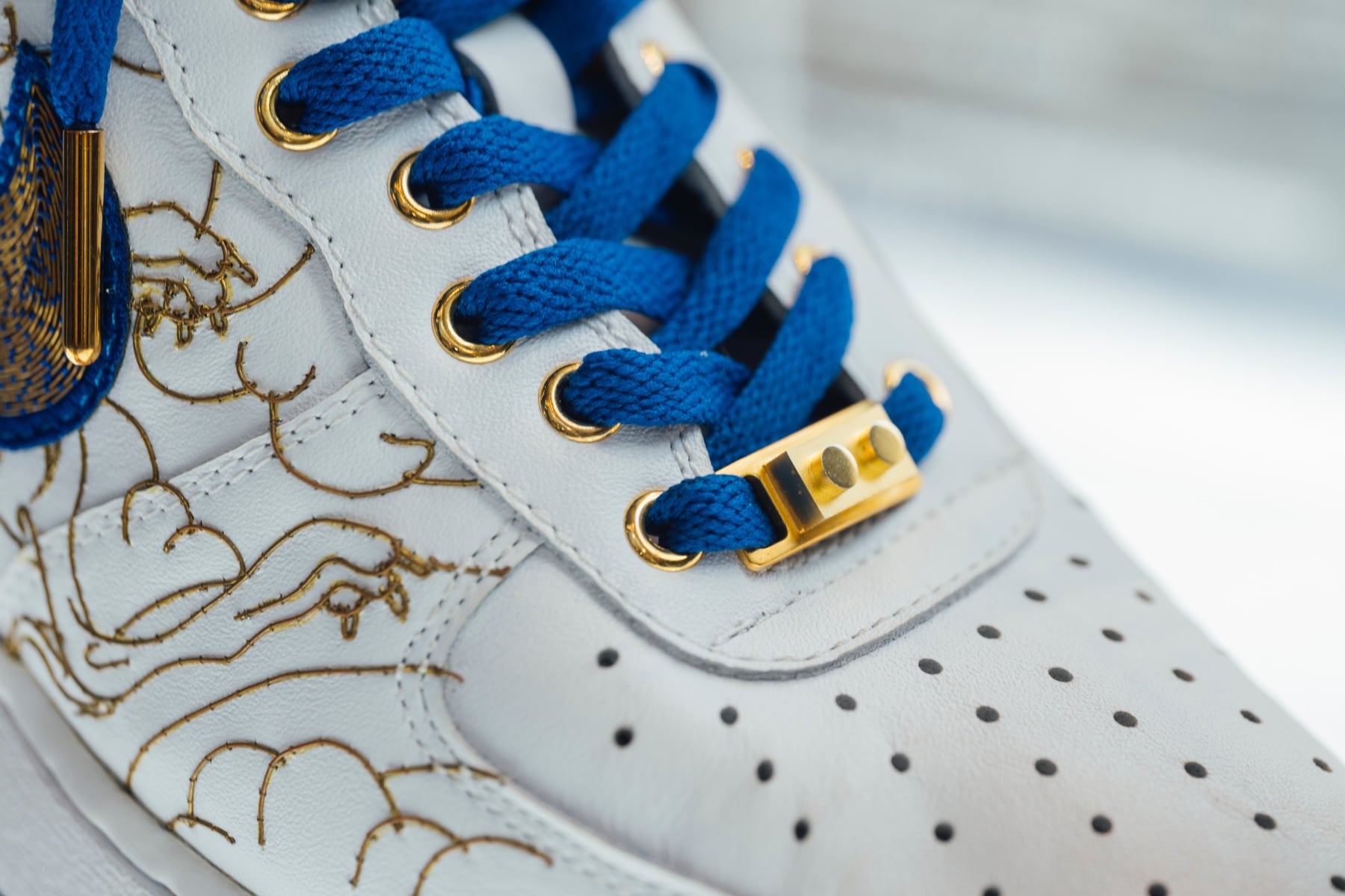kim-a: Nike Air Force 1 黃金鞋以東方神話意象「金烏 × 玉兔」為創作靈感,透過當代設計結合頂級傳統工藝,重新詮釋經典鞋款。作品以純金縫製皮革,將日與月、動與靜的陰陽哲學融入 Nike Air Force 1 鞋型之中,使鞋履從潮流單品升級為承載神話與工藝的藝術典藏。