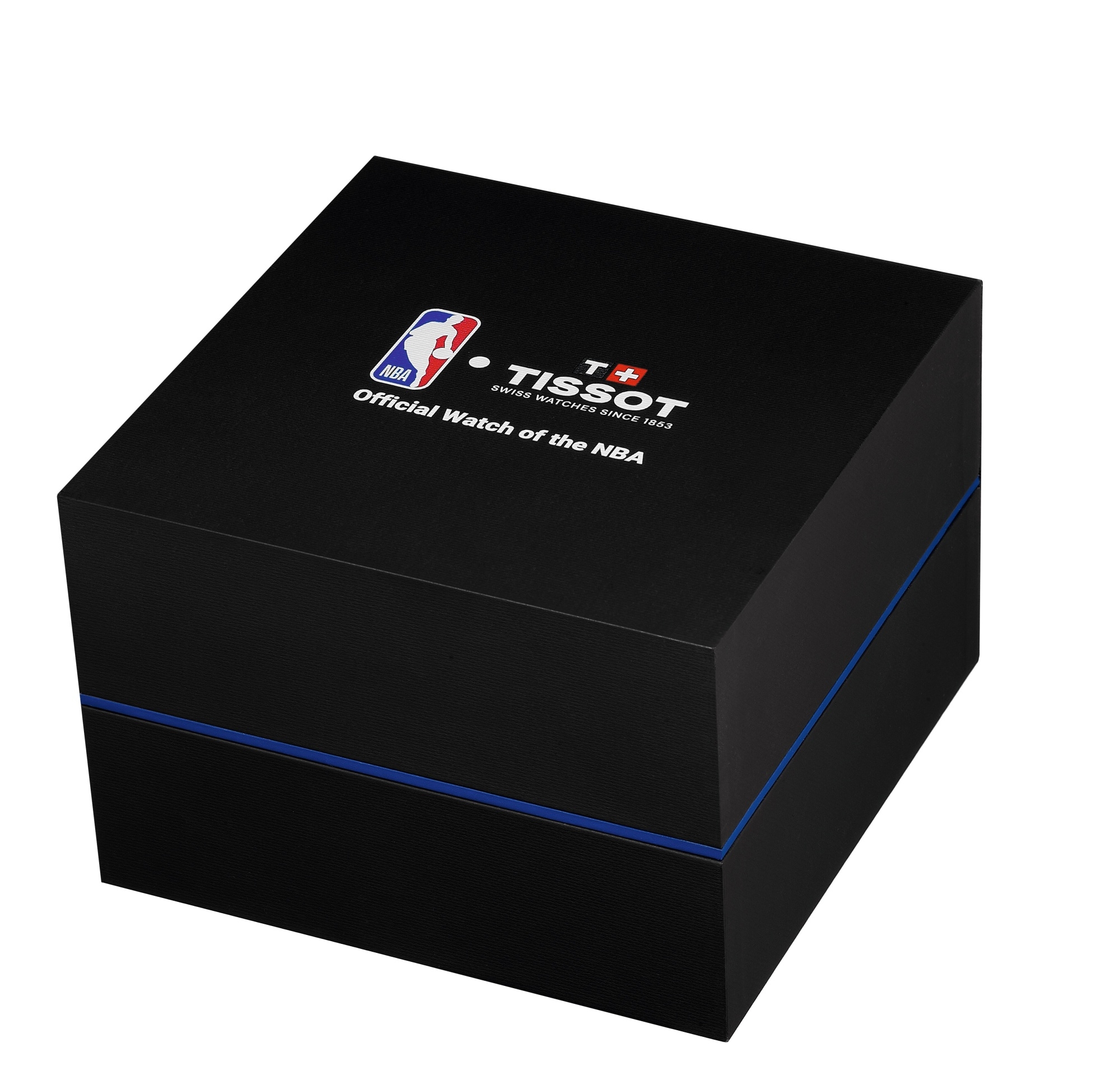 隨附特殊蒐藏錶盒,飾有TISSOT與NBA標誌,內側可見籃球壓紋凹槽,彰顯天梭表作為NBA官方計時夥伴重要角色