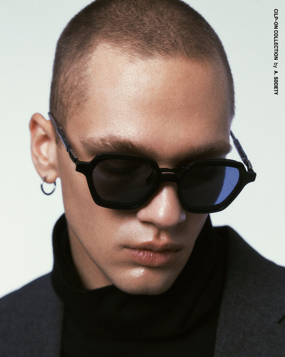 A. SOCIETY 首個磁吸式前掛眼鏡系列,配備磁石系統的鏡片能隨時隨地讓光學眼鏡變身墨鏡!鏡框與鏡片皆可在醋酸纖維、不鏽鋼組合中大玩搭配,彈性絕佳的智慧型無螺絲鉸鏈還能完美貼合任何臉型,全日佩戴亦舒適自在。