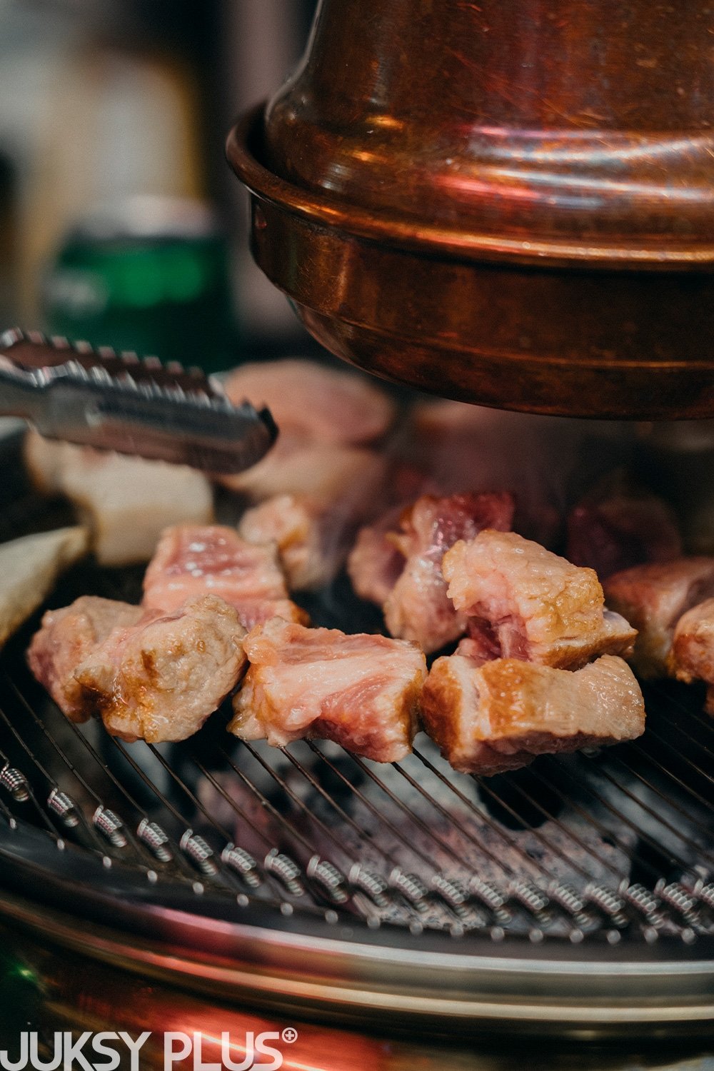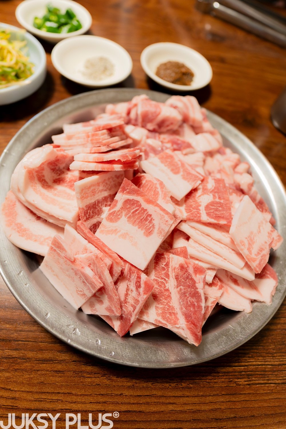 想吃到最道地、肉質最好的烤五花肉,那你絕對不能錯過「林間路肉舖」!店面不大、裝潢有點傳統,店內幾乎都是韓國當地人,必吃的就是厚切豬五花與豬梅花,豬五花肉切得非常厚實,經過大火炙烤過後,就能聞到濃濃的豬肉香氣,咬下後還會有肉汁噴發在口腔當中,而且完全沒有豬肉腥味,起司炸醬麵也是必點,黑嚕嚕醬汁味道很濃郁,麵條超級 Q 彈,難怪連韓國本地人都愛不釋口!