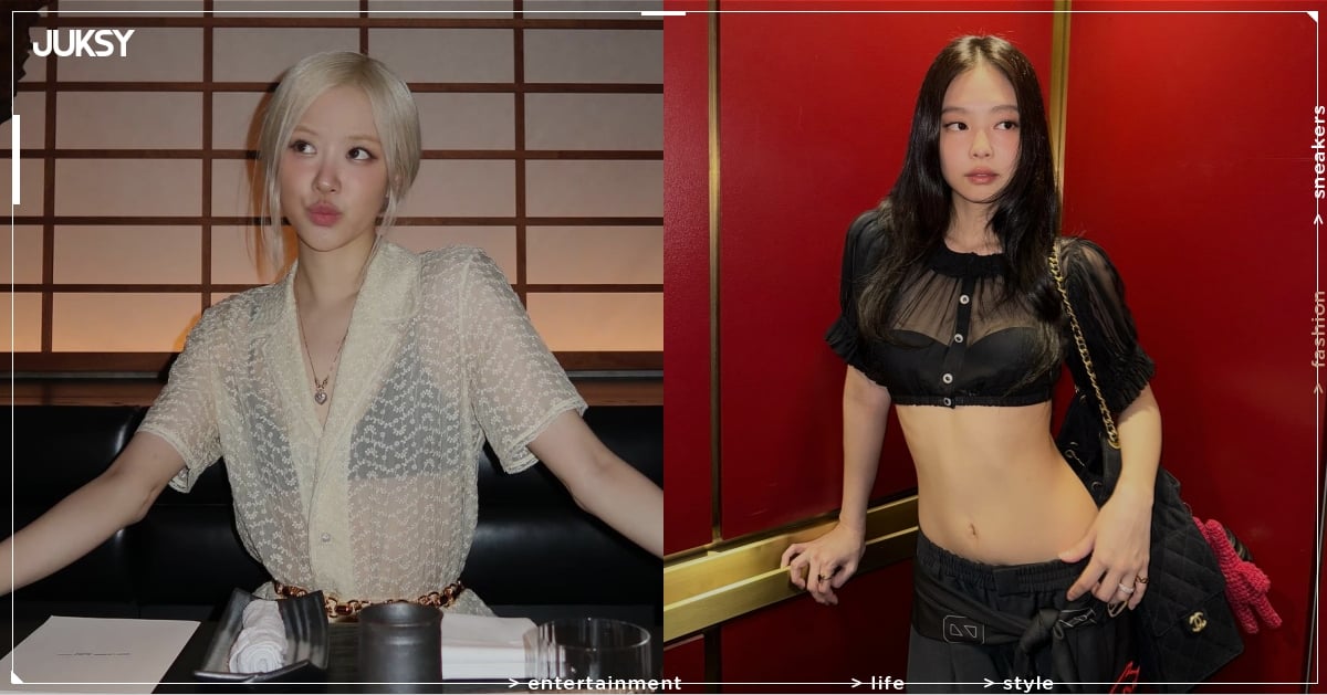 Rosé 現身紐約街頭以白色透膚上衣內搭黑色法式三角杯內衣。