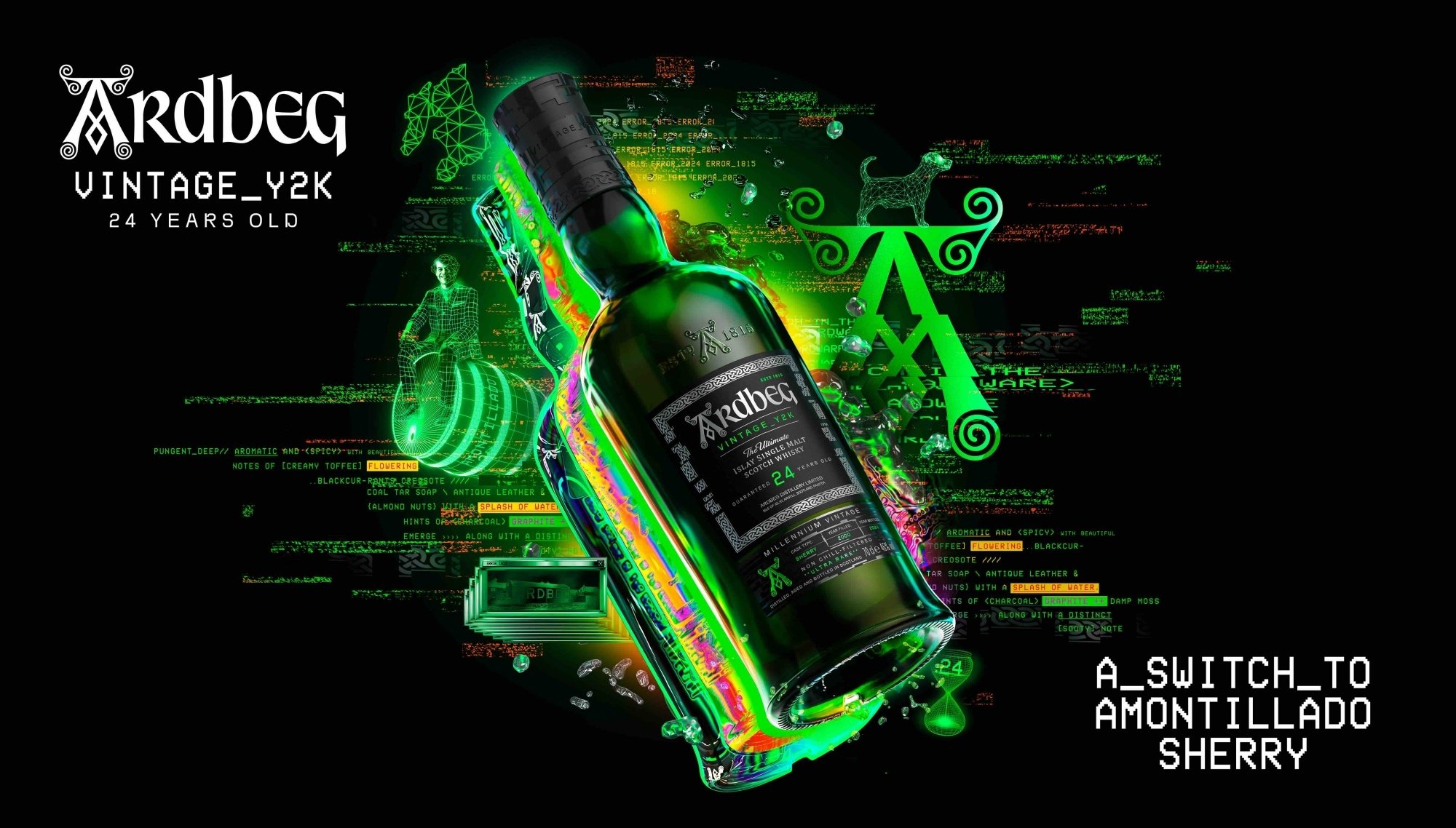 終極艾雷島威士忌品牌—雅柏(Ardbeg,酒友暱稱為阿貝)以千禧年份系列(Millennium Vintage Series)2.0 限量鉅作《Vintage_Y2K 24年》珍稀威士忌唱響屬於西元2000年的輝煌轉捩點。這是目前系列中最為稀有的作品,包含了酒廠有史以來首批在Amontillado雪莉桶中進行過桶熟成的酒液,打造復古調性的堅果香氣與細膩煙燻風味,開啟了前所未有的新紀錄。