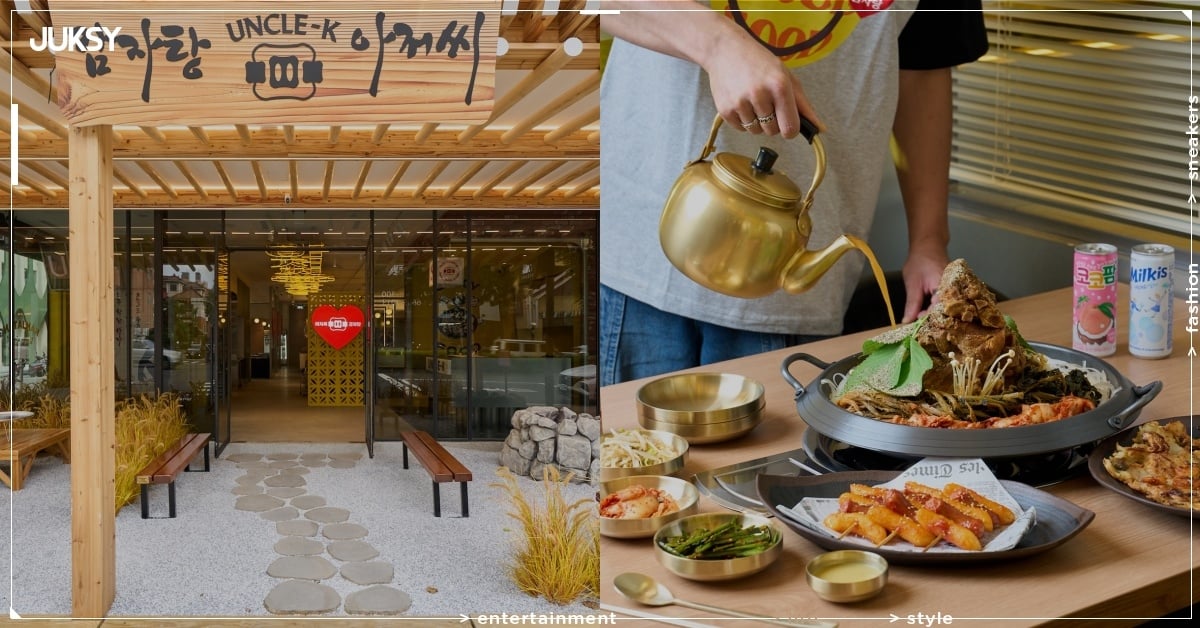 「Uncle-K 馬鈴薯排骨火鍋」由韓籍叔叔宋元燮與台籍叔叔 Jeremy 共同創立,韓籍創辦人宋元燮是將洪瑞珍三明治引進韓國,帶來熱銷風潮的重要推手,對市場具有高敏銳度的他,也發現韓流雖然風靡台灣,卻少了在韓國被譽為國民美食的靈魂料理「馬鈴薯排骨湯」,進而促使他花費整整一年時間,向擁有逾 70 年經驗的韓國老師傅學習,立志將最道地的韓國國民級料理帶到台灣。以整棟建築打造的台中首家店鋪公益店,門口採古樸韓屋設計,賓客在踏入餐廳前,彷彿一秒穿越時空,來到韓劇裡的拍攝場景。推開大門後,內部卻是截然不同的現代韓系潮流風格,強烈的視覺衝擊完美呼應了「穿越時空」主題。移植傳統與現代的韓國文化至台中,勢必成為餐飲新潮流的「Uncle-K 馬鈴薯排骨火鍋」,一樓用餐區有 80 個座位,並設置復古拍照機,饕客能在候位時間拍照留念,二樓則規劃 5 間獨立包廂,增添聚餐隱密性。