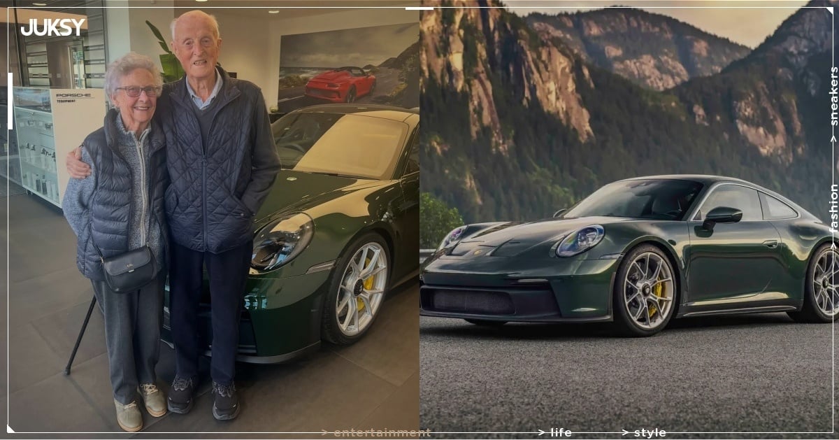 「恭喜 Evans 先生與夫人慶祝結婚 70 週年 🍾 證明了展開新冒險永遠不嫌晚。他們在 92 歲時迎來人生中的第一台 Porsche。誰說愛情會隨時間而減速呢!🙌」—— 來自保時捷官方文案。