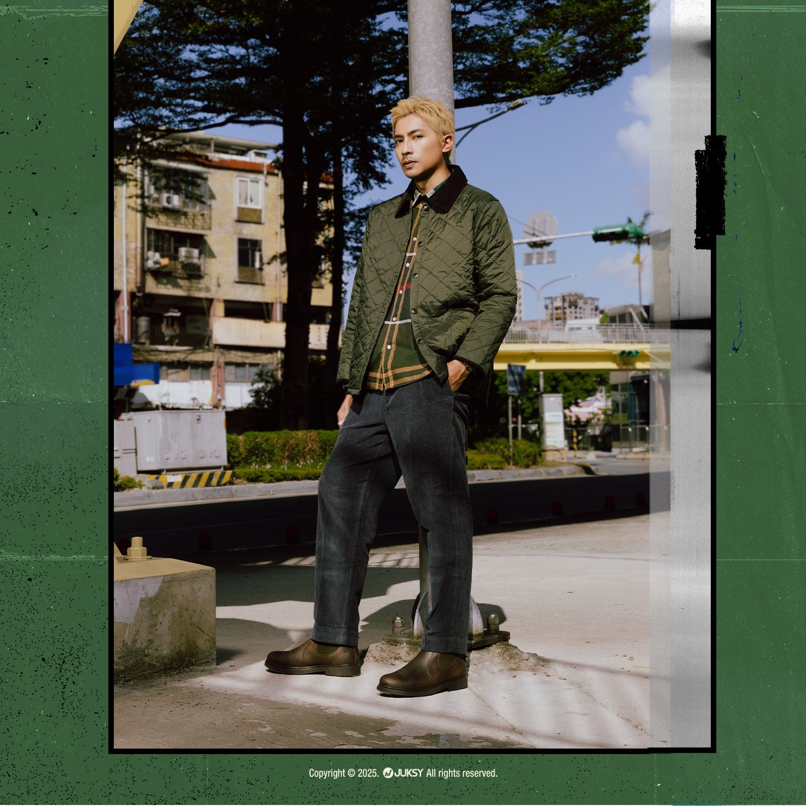 若偏好低調有質感的造型,推薦以 Select Liddesdale 絎縫外套為主軸,搭配 拼接寬版格紋襯衫、Ted 寬鬆燈芯絨長褲與 Hale 切爾西短靴。這件絎縫外套承襲 Barbour 自 1979 年延續至今的經典設計,以輕量與保暖著稱,立體菱格結構勾勒出俐落輪廓,深色調與格紋細節交織出濃厚英倫氣息。整體造型沉穩不死板,介於紳士與街頭之間,復古卻不老派。