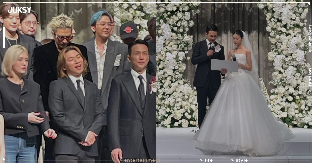 韓國音樂圈 11 日誕生神仙眷侶!知名製作人 Kush 與模特兒 VVN 在首爾舉辦夢幻婚禮,現場星光熠熠宛如頒獎典禮紅毯。最大驚喜是 BIGBANG 三位成員世紀合體,大聲擔任婚禮司儀、太陽深情獻唱祝歌、G-Dragon 親自致詞,三人以不同方式為摯友送上滿滿祝福,讓婚禮現場瞬間變身小型演唱會,網友看到畫面全瘋了,狂讚這根本是 YG 家族同學會。