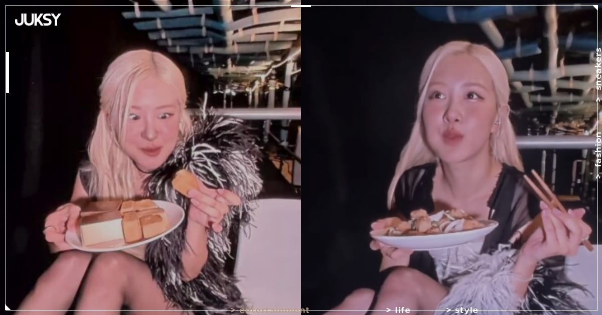 當晚演唱會進行到 Rosé 的個人 SOLO 段落時,她坐著車子從台下緩緩現身,手上拿著金色包裝的鳳梨酥,先優雅地咬了一口,接著又拿起 50 嵐手搖飲大口吸珍珠,滿足的表情全都被投影在大螢幕上。眼尖粉絲立刻認出,那正是高雄百年老店「舊振南」的招牌「小金磚」鳳梨酥,而她喝的則是「波霸紅茶拿鐵」,讓粉絲直呼:「女神真的超懂吃!」。更讓人驚喜的是,Rosé 在 19 日演唱會改吃鹹酥雞,一手拿著筷子、一手比讚,完全融入台灣夜市 vibe!不過這次鹹酥雞沒有包裝袋,粉絲們想吃到「女神同款」可能有難度了,網路上雖有許多搖傳但目前仍沒有確定的答案。畫面普光後粉絲全都笑翻:「Rosé 根本是真・吃貨女神」、「連鹹酥雞都被她吃出仙氣」。