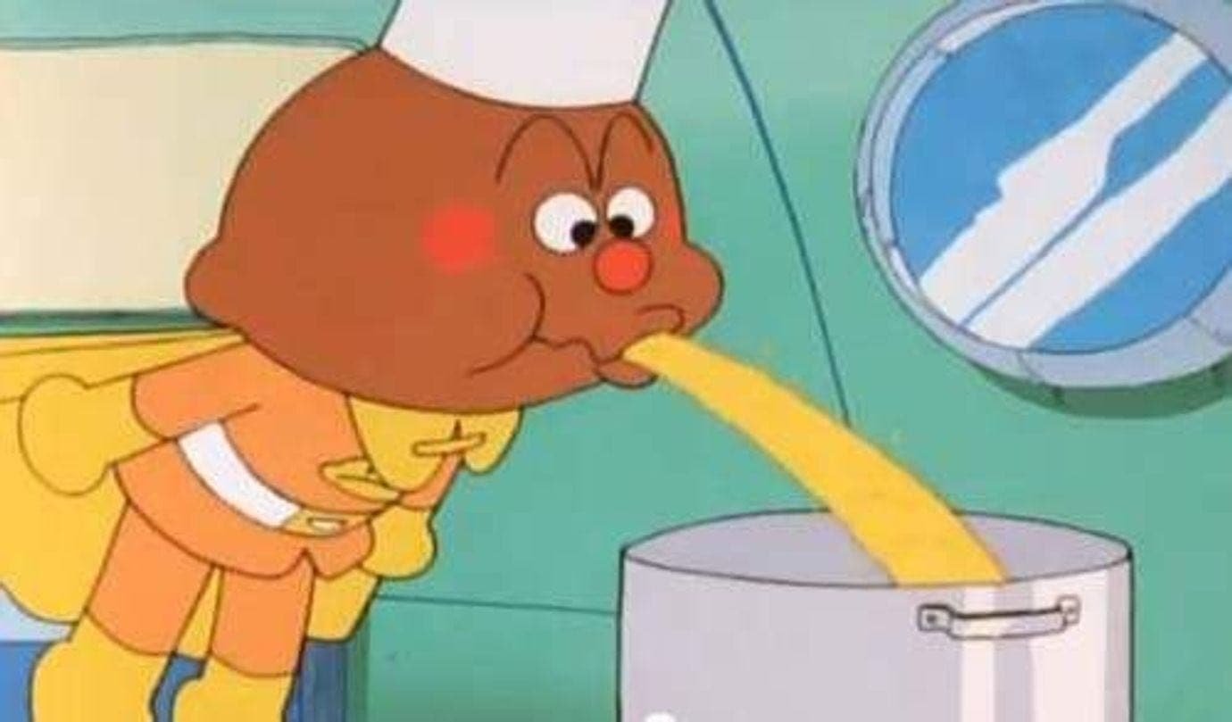 根據 1998 年報紙的紀錄,最初的麵包超人根本不是超人,而是一位普通人。他背著紅豆麵包、到處發給因戰爭而飢餓的孩子,結果因為闖入戰場救人,最後慘被殺害,這麼悲壯的劇情根本是戰場版《你的名字》。更誇張的是,還有一種說法指出,原版麵包超人其實是一位不起眼的大叔,結果在飛越國境時被不明飛行物體擊落… 就這樣領便當。只能說這結局真的太重口味,小朋友要是看了可能直接做惡夢!也難怪後來官方趕緊讓麵包超人重生成如今這位「用臉送愛」的療癒系英雄!