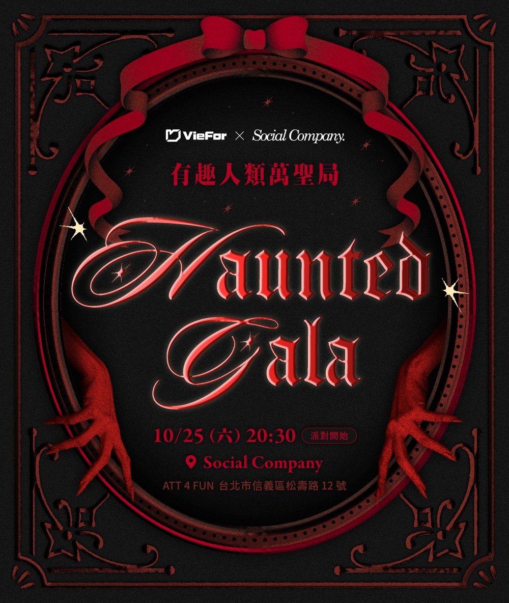 社交平台 VieFor App 邀請人氣樂團胡鬧戰隊、網紅紀牛牛與向怪魚上街搞鬼。攜手來自荷蘭的數位藝術家 Lotte Vont,將信義街頭打造成超現實的沉浸式異界空間。邀請大家10月25日(六)晚間,《有趣人類萬聖局 HAUNTED GALA》將於Social Company(台北市信義區松壽路12號1樓)舉辦「紅毯抓鬼行動」,隨機邀請裝扮最狂的路人走上紅毯,錄下即時畫面上傳 VieFor App,參加「萬聖紅毯競賽」。