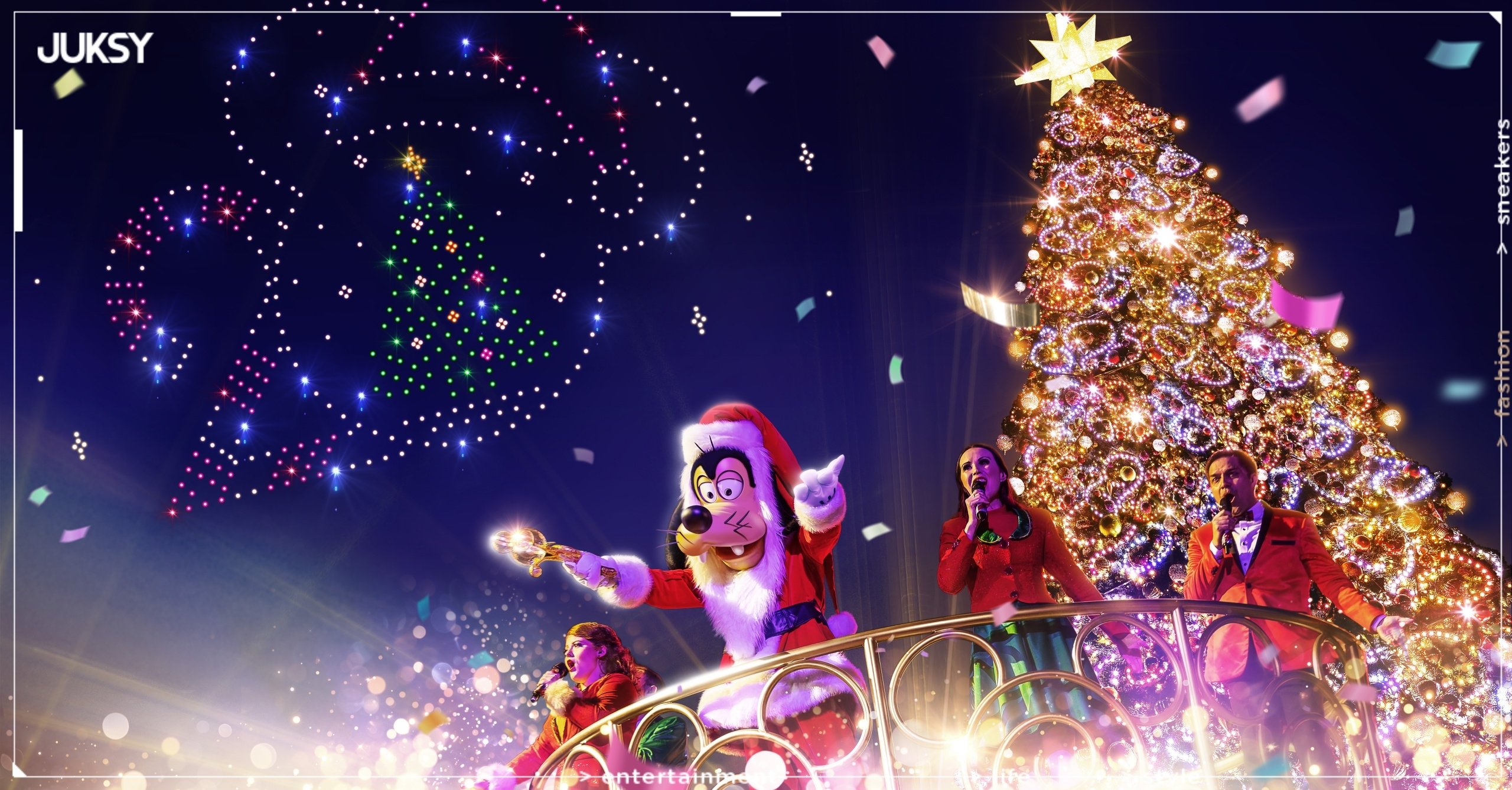 當冬天夜晚來臨時,聖誕節也有不少驚喜!《夢想成真聖誕樹亮燈禮》在飄雪與無人機光點下點亮美國小鎮大街,每一個瞬間都超感人(默默掉下男兒淚那種),空氣中都瀰漫節日魔法。緊接著,Disney Live 音樂派對正式登場!聖誕高飛與迪士尼朋友將在舞台上帶來動感演出,配合現場的飄雪、光影、水柱與煙火分享多首經典聖誕歌曲。今年特別邀請馮允謙、周殷廷、許廷鏗,以及香港兒童合唱團同台獻唱,讓每一位觀眾沉浸在溫暖又歡樂的節日氣氛中。