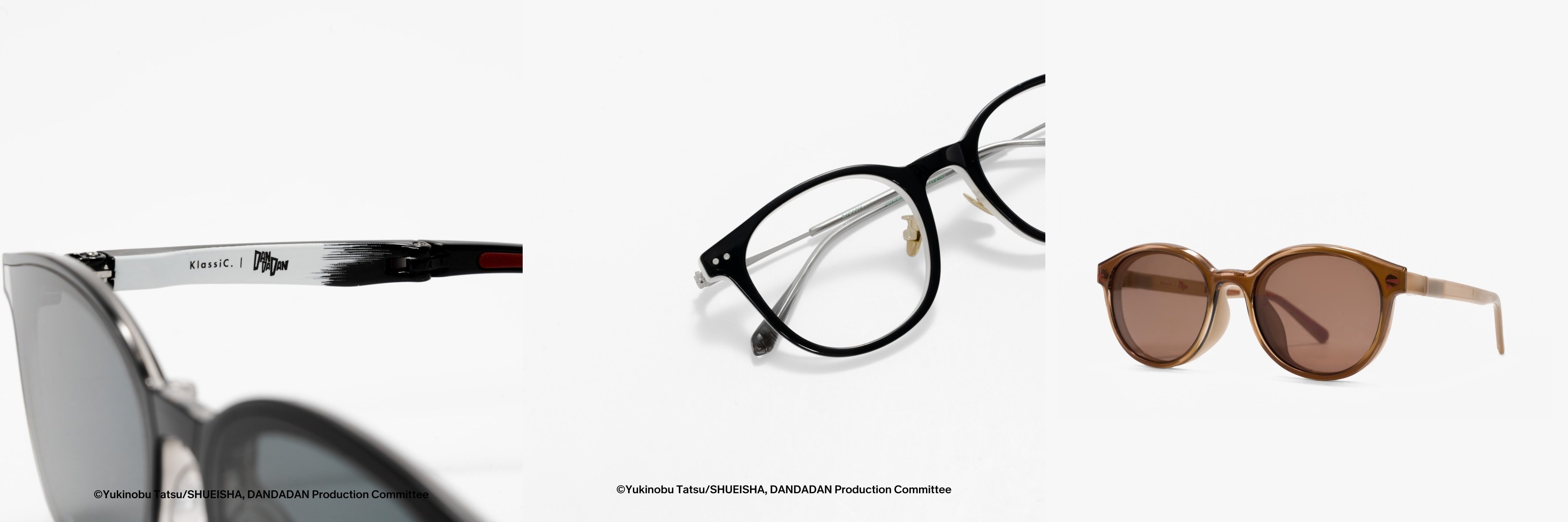 ■ 機能掛片系列:圓框與方框搭配三色設計,分別對應劇中不同鬼怪角色特徵,圓框對應幽靈如:人體模型太郎、高速婆婆、身手矯健長髮女。方框則對應外星人如:賽伯星人、賽伯星人(本體)、蝦蛄星人。鏡腿內側融入角色圖案與專屬 icon,掛片兼具耐撞擊與輕量特性,不僅實用,更將角色元素自然融入日常造型。
