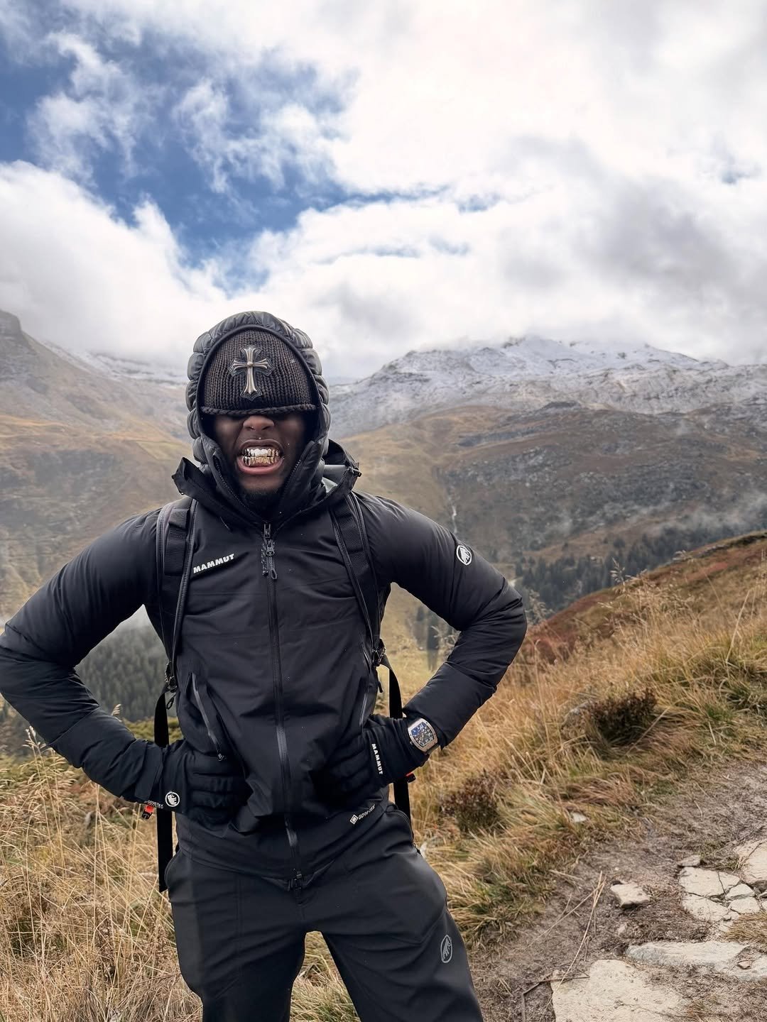登山造型中,Kai 換上價值滿點的 Richard Mille RM 67-01。這款超薄機芯設計的 RM,一直以來都是運動員與名人愛用款,搭配他身上的 Chrome Hearts 毛帽與防寒裝備(甚至爬山還戴 Chrome Hearts 毛帽...),確實是成功詮釋了他「山上也要 drip」的精神。