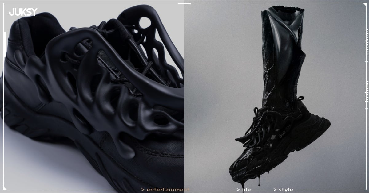 NEO 3D ExoCover 外骨骼鞋飾設計靈感源自細胞分裂、生物流體融化與纏繞的張力,以濃厚未來感的有機流體形態誕生,化為寄宿於鞋身的外骨骼裝甲。骼甲結構以融化般的流體線條纏繞於鞋舌,展現侵略性與力量感,如同共生體般與鞋履結合,為鞋身注入強烈的視覺衝擊。呼應本季 INCODER 2025 AW 主題《假想拆解 Fiction Dissection》,外罩式鞋飾被轉化為「結構重組」的延伸語彙。透過層疊、拼接與段差的語法,半罩式骼甲不再只是裝飾,而是鞋身與外部結構之間的「第二層皮膚」,介於包覆與釋放之間,形成一種可呼吸的動態張力。