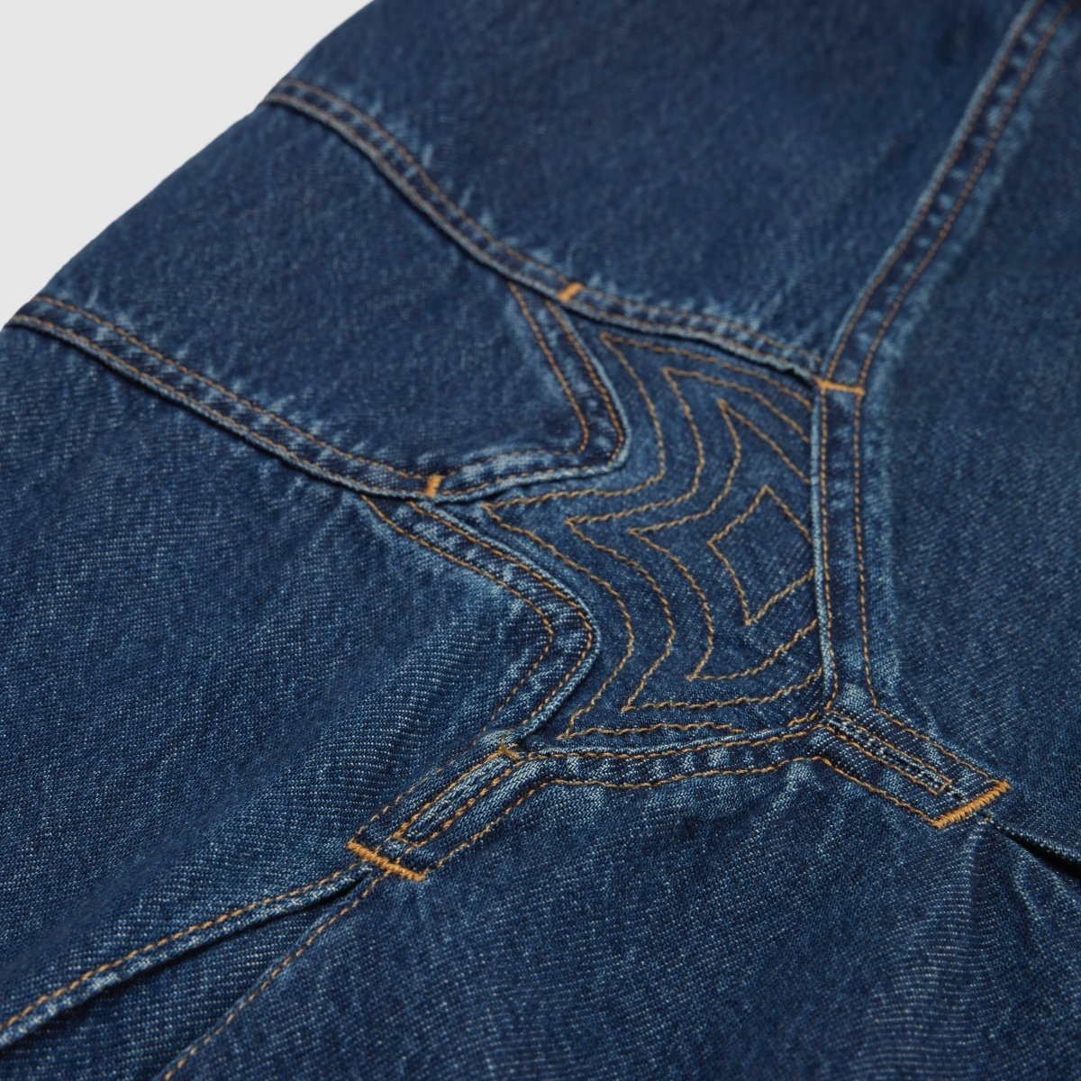 結實耐用且適應性強的丹寧布,逐漸成為許多藝術家的「第二層肌膚」。它不僅出現在創作的工作室裡,也隨藝術家走進畫廊開幕、媒體採訪、攝影現場,甚至進入上流社交場合。隨著丹寧在藝術家身上流動與轉化,它經常出現在意想不到的場域,並以顛覆傳統的穿搭方式呈現。於是,丹寧成為一種多變且低調的反叛,一種民主、大量普及的布料,卻能在充滿慣例和行為準則的空間中佔有一席之地。此次膠囊系列即是在正式的優雅氣質與具實用性的真實間遊走,透過擁抱兩者交融所產生的張力、進行顛覆,再重新定義形式與結構。