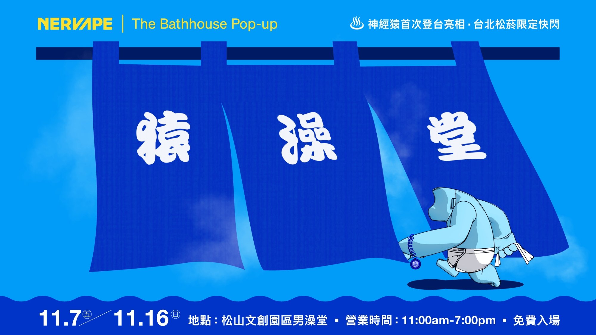 Nervape 攜手戶外品牌 「人八月」、「 Black Design 」、全球多位獨立藝術家即將於 2025 年 11 月 7 日至 11 月 16 日 首度登陸台北,在松山文創園區男澡堂推出限定展覽《猿澡堂 The Nervape Bathhouse》。以「澡堂」為核心概念,觀眾將從入浴儀式開始,逐步走入猿群的色彩能量場,體驗品牌所主張的「共創、進化與連結」精神。