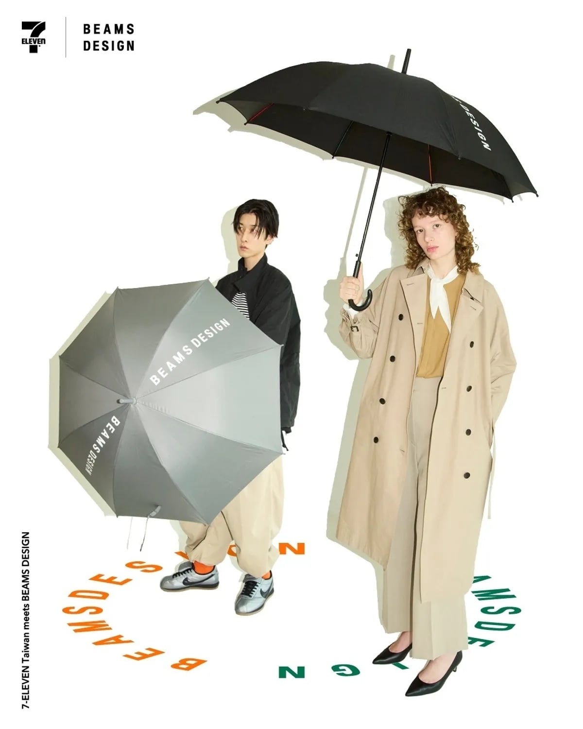 「雨傘系列」主打沉穩的黑、灰色調,推出直傘與自動摺疊傘兩種款式,皆具優秀潑水性與 UPF50+ 抗 UV 機能。傘骨內側悄悄藏入 7-ELEVEN 經典三原色細節,低調卻很有態度。直傘風格俐落大方;自動摺疊傘則為晴雨兩用、遮光率達 99%,具備自動開合與防水套,輕巧好帶。