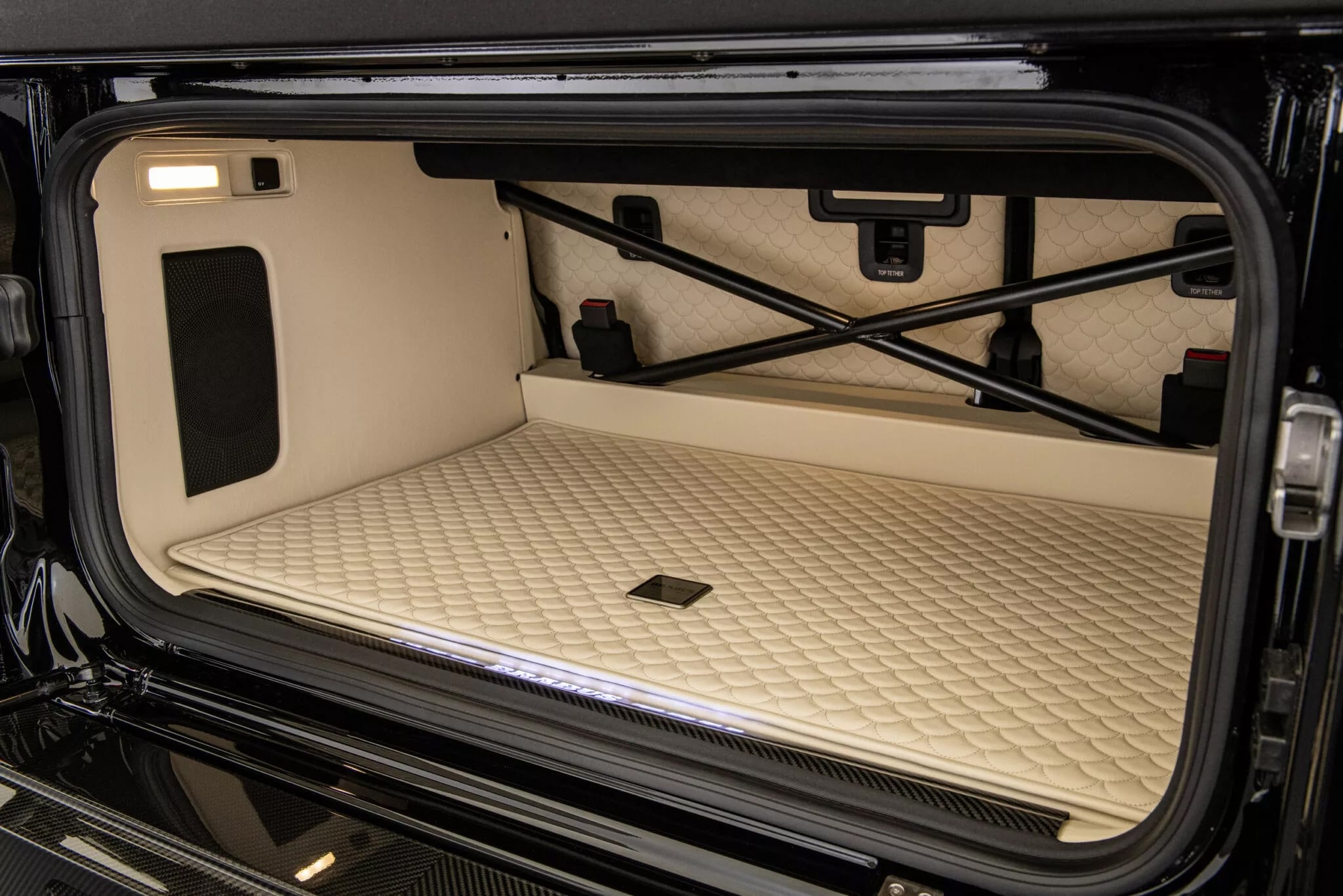 車室設計也有所提升,包括專屬縫線、通風座椅、加熱頸部出風口與大面積碳纖維飾板等配備。內裝細節處處展現奢華質感,讓駕駛與乘客都能享受頂級的乘坐體驗。無論是材質選用或是工藝水準,都展現出 Brabus 對於細節的堅持。這樣的配置不僅提升舒適度,也讓整體質感更上一層樓。