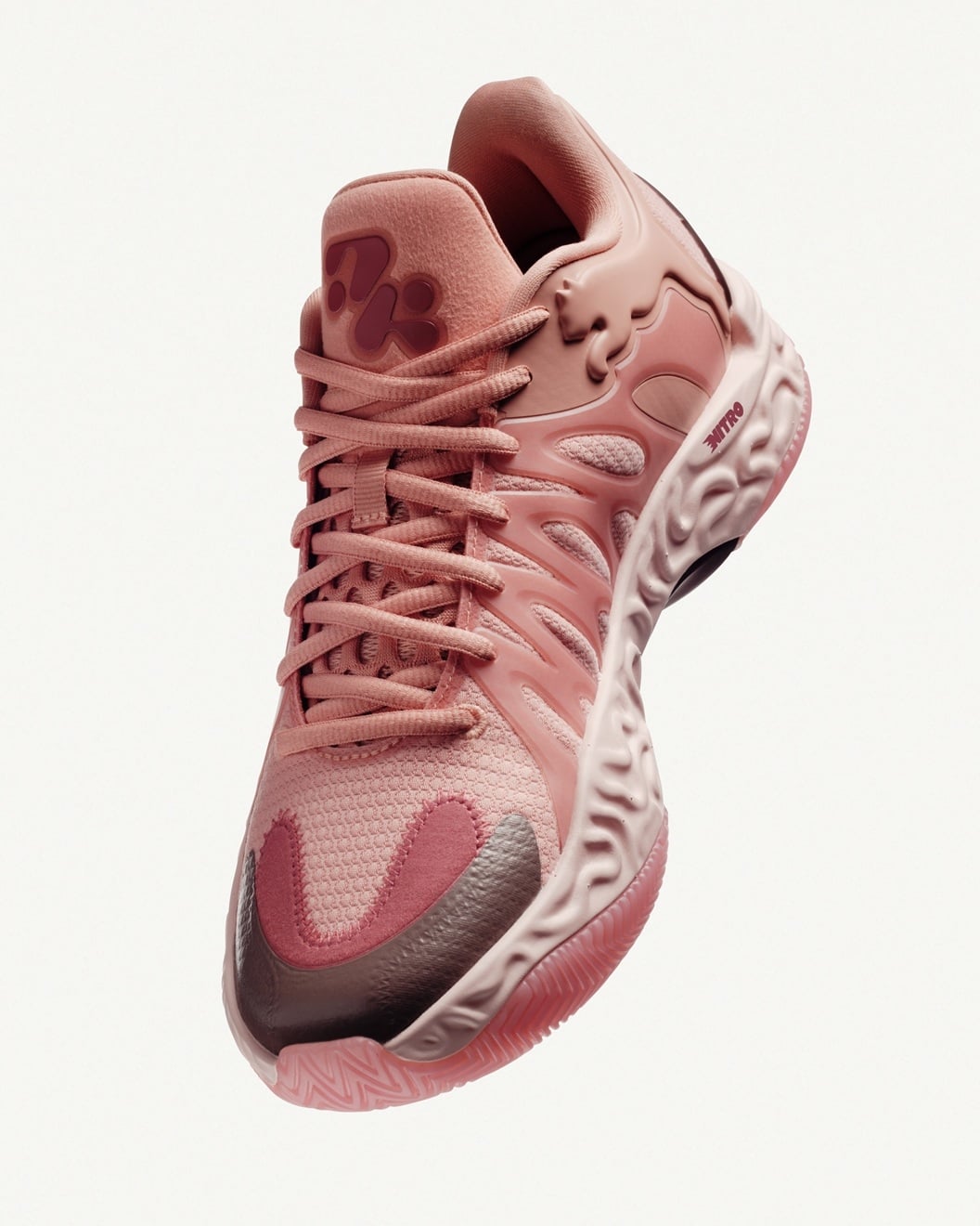 HALI 1 全新配色 Hibiscus 在鬼才設計師 Salehe Bembury 的操刀下,整體以扶桑花的搶眼亮粉搭配代表性紋理設計,打造出如藝術品般的高端工藝。在細節上,鞋舌印有哈利伯頓專屬標誌 TH,鞋側則點綴經典跳豹 Logo,並以不同層次的粉色做出漸層感的堆疊。