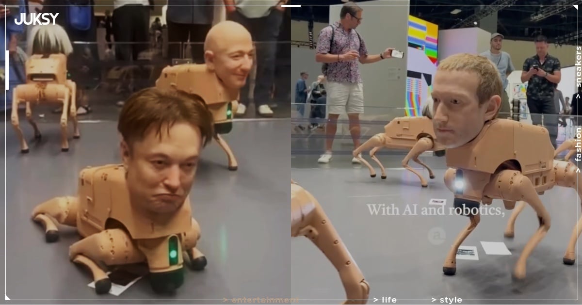 在今年的 Art Basel Miami Beach 展場中,一個名為 zero-10 的展出區域意外成為全場最熱門的焦點。由 Beeple Studios 帶來的最新裝置作品,以一群機器狗為核心,但真正吸引人群圍觀的,是這些機器狗的「頭」,創作者將它們全部替換成地球上最具象徵性的富豪與文化名人,包括 Elon Musk、Jeff Bezos、Mark Zuckerberg,又或是已故藝術家 Andy Warhol、Picasso 都出現在其中,甚至連金正恩都有;各種臉孔以荒謬又帶點諷刺的方式被安裝在科技感很重的機器狗身軀上。這樣的視覺反差衝擊讓許多觀眾忍不住停下腳步,或覺得十分滑稽、或感到一絲不安,數小時內便在社群平台上迅速發酵。