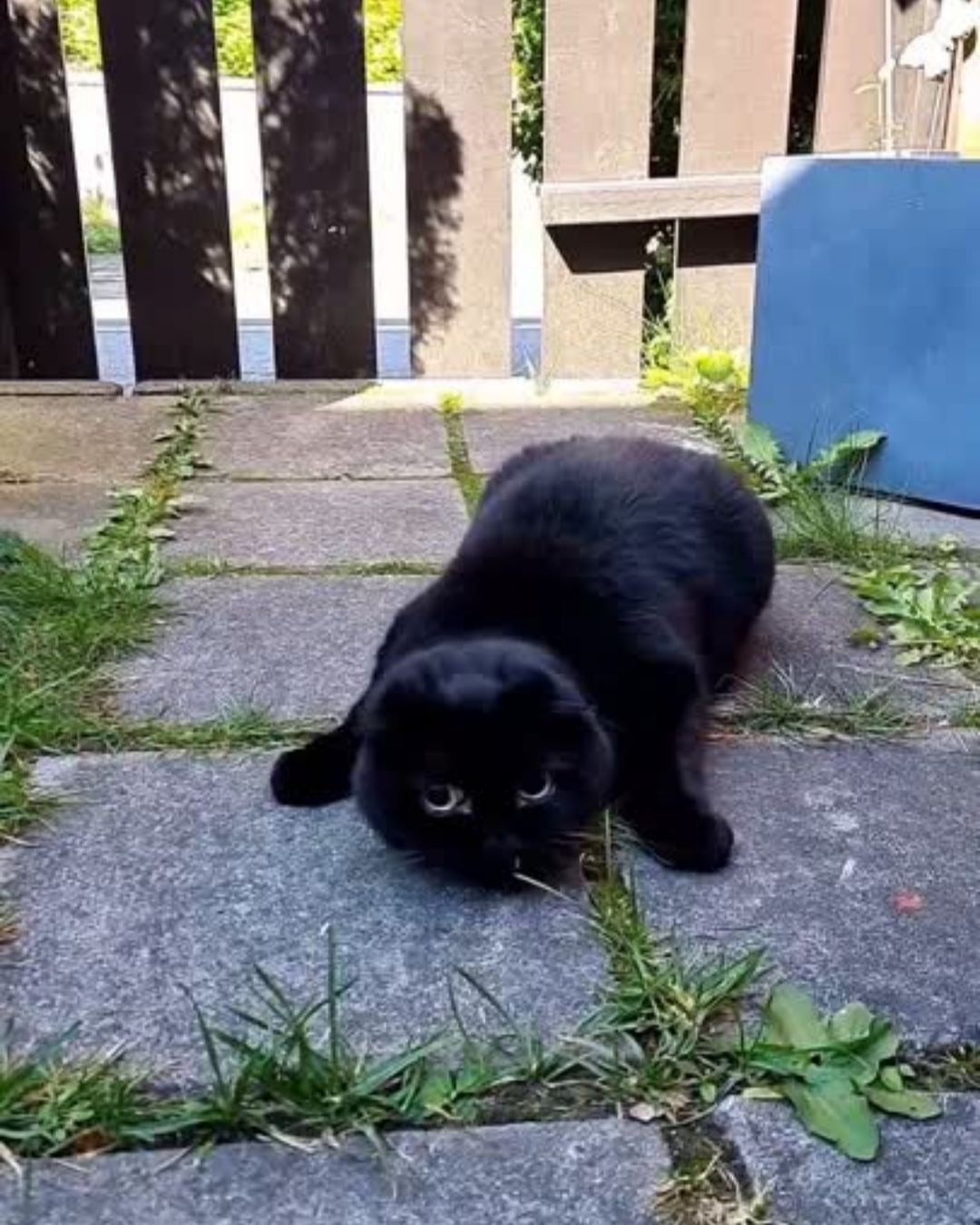 Tingeling 最有名的就是牠對著玩具做出「搖屁屁」的可愛動作!主人 Greta 經常讓兩隻貓咪在庭院玩耍放風,並拍下了牠超可愛的狩獵萌樣。牠扭腰擺臀、準備撲倒獵物的樣子,讓網友紛紛留言:「真的看幾次可愛幾次!」、「拜託撲倒我吧!」、「黑貓是全世界最可愛的生物!」
