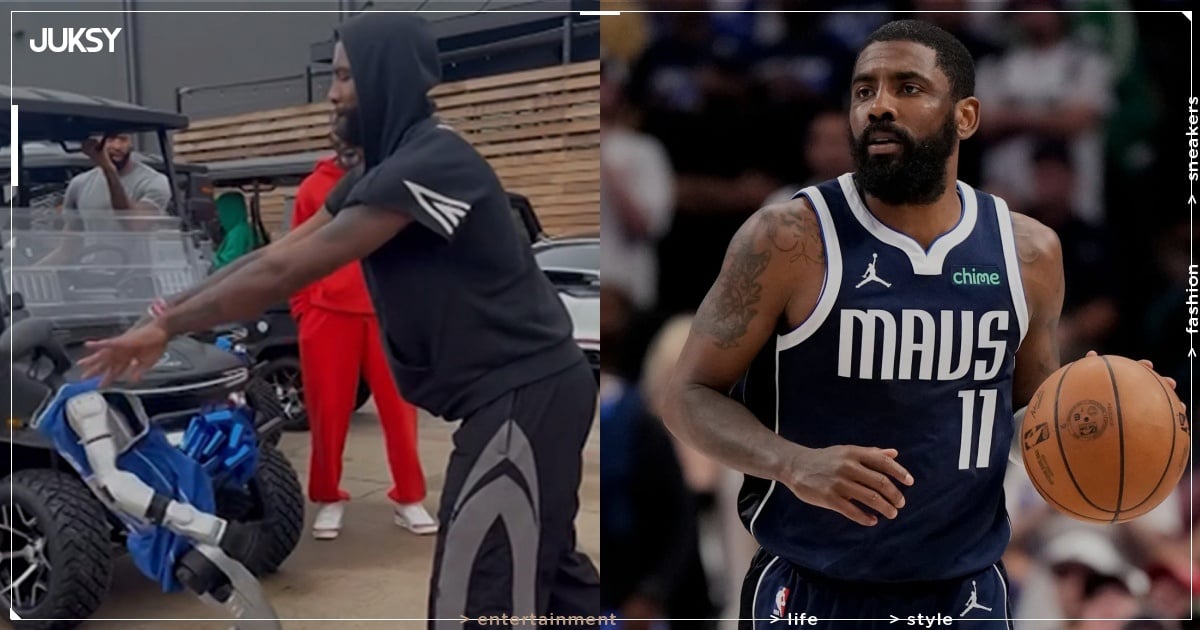 只見這隻機器人穿上 Kyrie Irving 的獨行俠球衣,看起來機動性十足,甚至還會迴旋踢,其主人向 Kyrie Irving 表示「你可以試著跟他切磋一下」,起初 Irving 聽到有點不敢置信:「你確定欸?你要我試試看嗎?」該名男子依舊堅持己見,後續 Irving 只好真的跟這隻機器人武術交流一番,沒想到才剛開始而已,Irving 雙手一推就把對方 KO 倒地,頓時現場一陣尷尬。