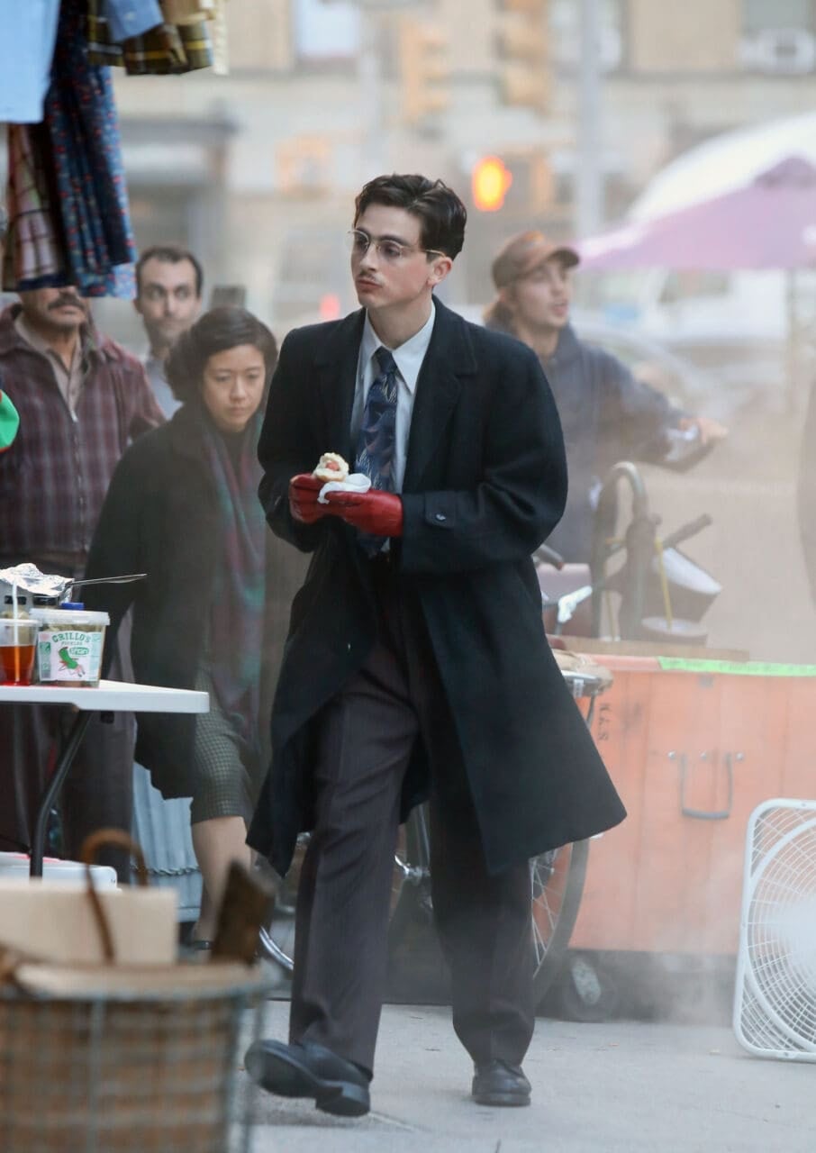 這樣的宣傳方式,也讓近年被稱為「方法式穿搭(Method Dressing)」的概念,在《Marty Supreme》中被推向更自覺、也更徹底的層次。Chalamet 不再只是為紅毯或曝光場合挑選一套「好看的造型」,而是讓穿搭本身成為角色敘事的延伸。他透過顏色、輪廓與材質的反覆運用,持續向外界傳遞一個清楚的訊號:「這部電影並不是只存在於預告片或戲院中,而是一個正在進行、正在滲透現實生活的世界觀。」