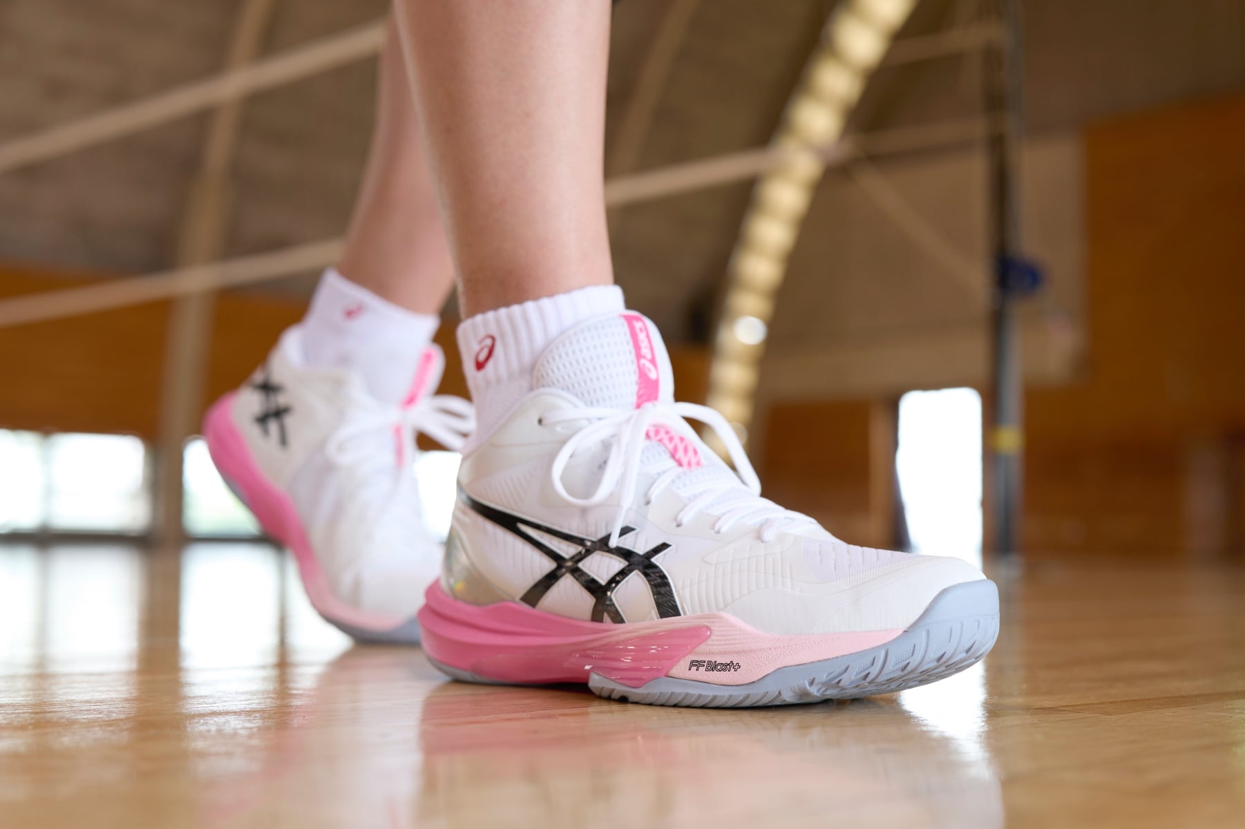 石川真佑選手表示:「V-SWIFT FF 5 是最貼合我腳型的鞋子,優異的緩震性能讓整體動作更流暢,特別是在扣球動作時能感受到穩定支撐,讓我能在場上有更好的表現。」