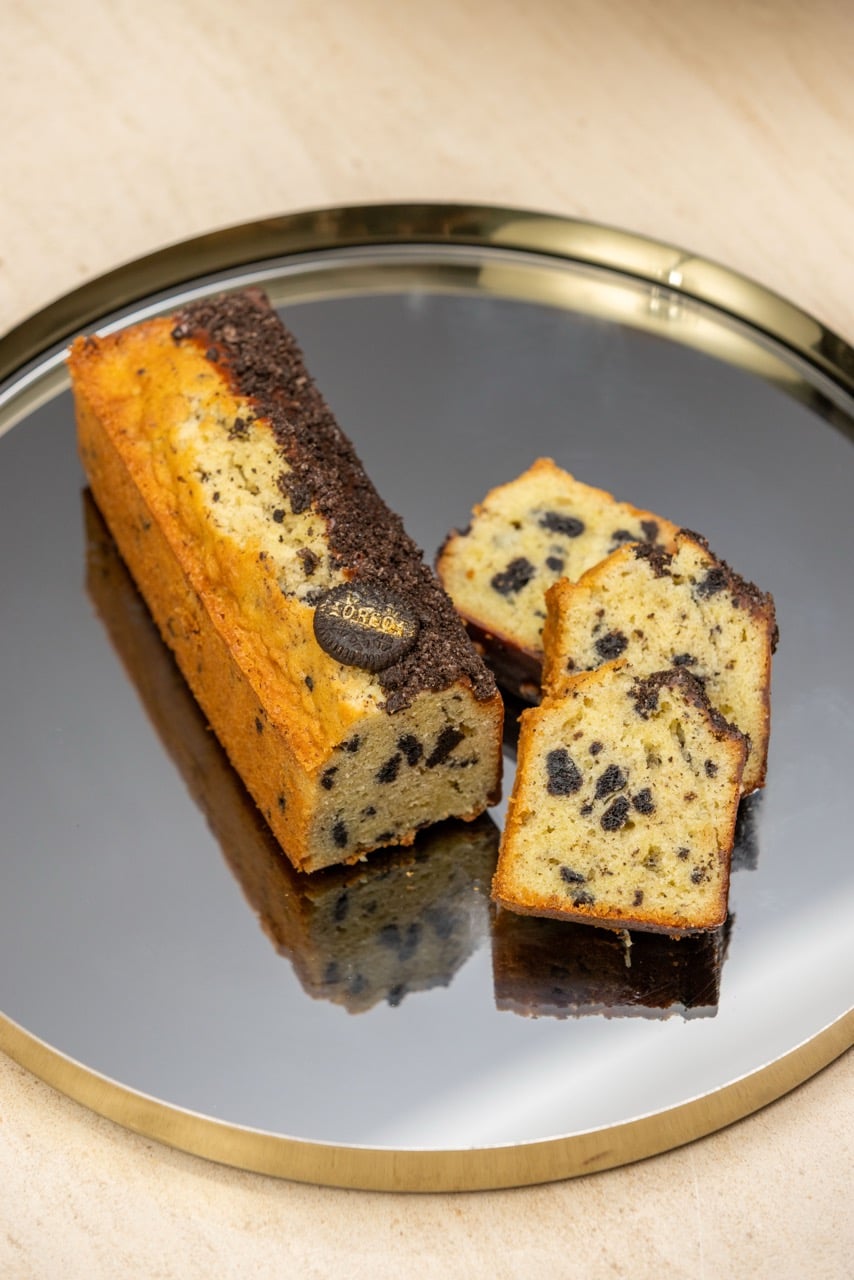 「OREO 磅蛋糕」選擇以更貼近日常的形式呈現,鬆軟蛋糕體中混入巧克力碎片,表層覆以巧克力淋面與杏仁角,再灑上砂糖顆粒,讓甜度在不同口感之間展開,整體濃郁卻不顯厚重。以榛果風味為靈感的「榛果巧克力 OREO」,則在柔順口感中加入榛果脆片與餅乾碎屑,讓酥與滑在口中交錯,成為冬季甜點中記憶點鮮明的一道。