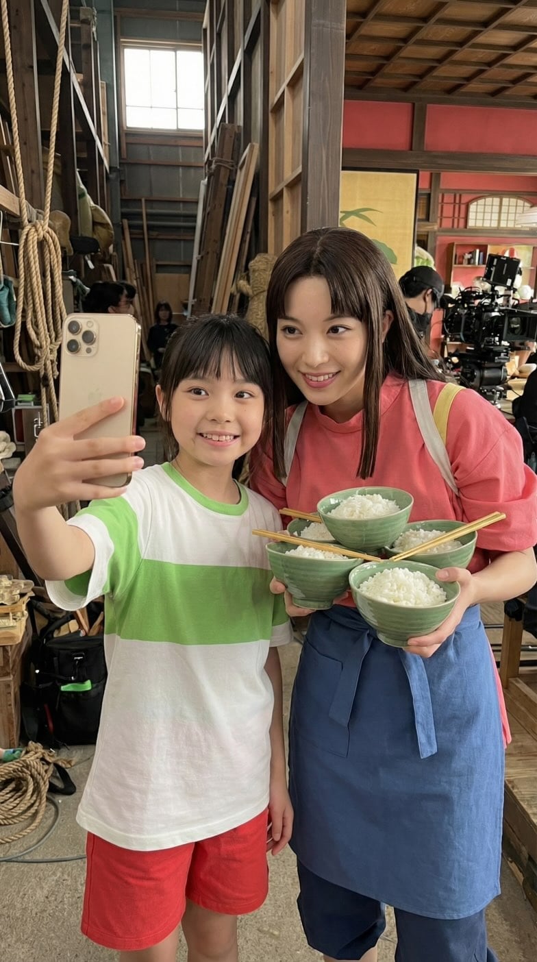 一名網友近日在社群平台 Threads 上發布用 AI 創作《神隱少女》真人版電影角色在片場的合照,包括女主角小千、千尋爸媽、湯婆婆、白龍、小玲、無臉男、鍋爐爺爺、青蛙、夫役等等,除了每個角色還原度都超高,背景的片場道具也都超逼真,照片裡小千還拿著智慧型手機與其他角色自拍,讓網友們驚喜留言:「好希望有真人版!」、「這才是我要的 AI!」、「進入童話世界了!」