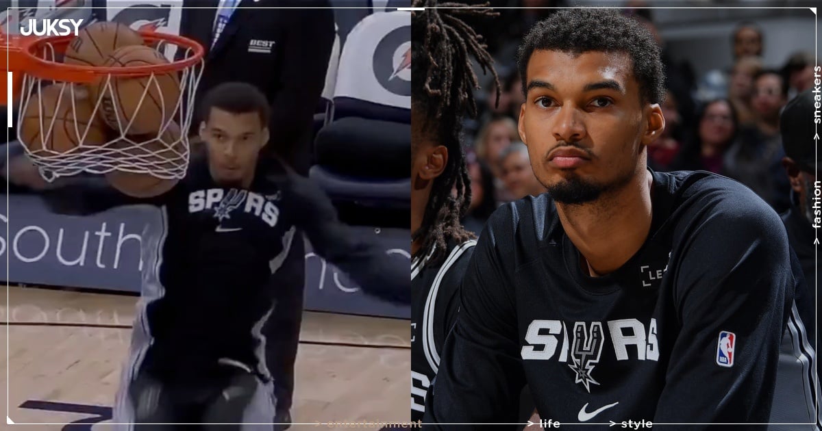 Victor Wembanyama 在上週對陣尼克隊的比賽時不慎傷到左膝,不過後續在經過核磁共振(MRI)檢查並未出現任何韌帶損傷,在缺席兩場比賽後,今日與灰熊隊一戰正式復出球場。賽前熱身階段,Victor Wembanyama 似乎也顯得十分興奮,在看到籃框上有卡著好幾顆籃球後,第一時間沒有選擇用手將其撥走,而是試圖用「飛踢」的方式,最終也真的成功用腳碰觸到球。
