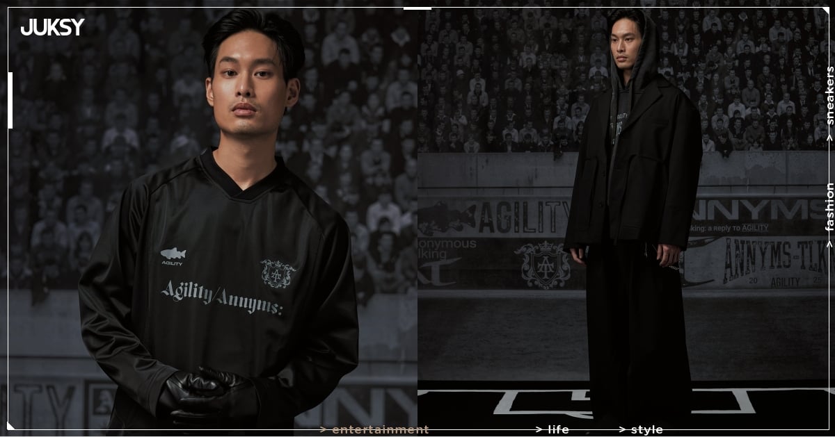 除了復古球衣之外,系列也推出多款現代時裝設計,包括帶有肩帶設計的西裝外套(Strap Blazer)以及縐紗長褲(Crepe Trousers),這些單品展現品牌將正裝元素融入街頭風格的設計功力。此外,系列還包含百褶牛仔褲(Pleated Denim Pants)、寬鬆版型系列(Boxy Fit Collection)、品牌標誌連帽衫(Logo Hoodie)以及硬幣褲鏈(Coin Trousers Chain)等秋冬單品與配件,每一件單品都經過精心設計,既能單獨穿搭展現個人風格,也能相互搭配創造層次豐富的造型。這種將運動服飾與正裝混搭的概念,正是當代街頭時尚最具代表性的穿搭趨勢,Anonymous Talking 與 AGILITY 透過這次聯名,完美詮釋這股風潮的精髓。