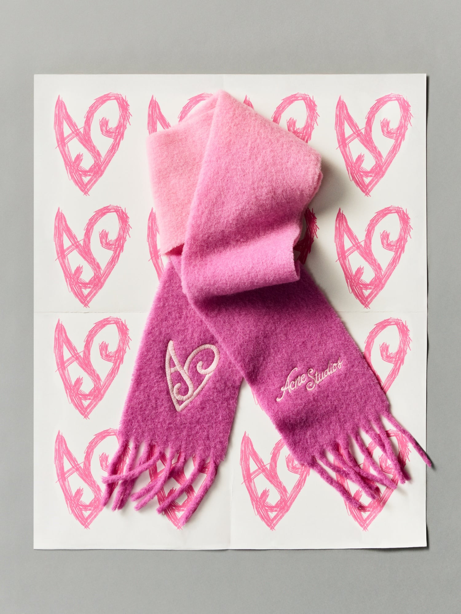 Acne Studios 2026馬年新春限定系列以全新色調與圖案演繹多款經典單品。標誌性T恤以鮮豔粉紅絨毛質感重新詮釋1996 logo,展現熱情與力量的視覺語言。Trompe-l’oeil 錯視效果牛仔褲採用寬鬆剪裁,金色鑰匙圈與心形鑰匙飾物印花圖案更添玩味。同款手提袋延續錯視視覺設計。紫粉漸層染色搭配噴繪效果標誌的Camero Party包款,將復古輪廓與實用功能完美融合,經典鑰匙飾物與限定心形吊飾相映成趣。全新連帽圍巾帶來溫馨暖意,而經典馬海毛Vally圍巾以亮粉與淡紫色調呈現,心形刺繡與流蘇邊飾點綴其間,為系列注入節慶氛圍。