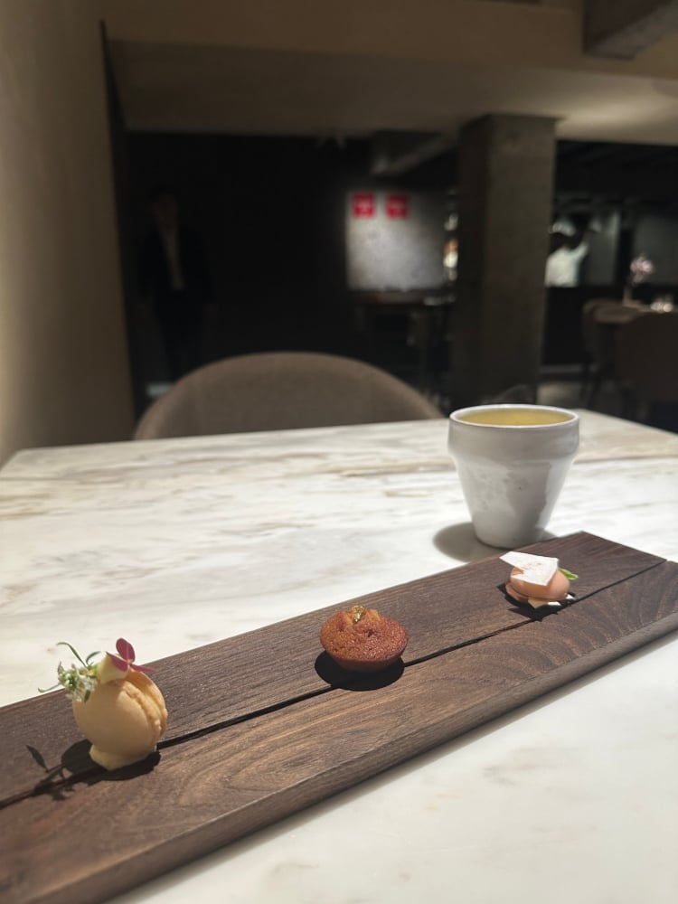 主廚飛松裕之以純熟的料理技術為基礎,融合日本料理職人對季節的敏銳感知、法國修業時期的回憶,經由歐洲風土薰陶的豐饒底蘊,描繪出一道清澈而溫潤的味覺軸線,如同冬日陽光般靜靜灑落於城市與餐桌之間。