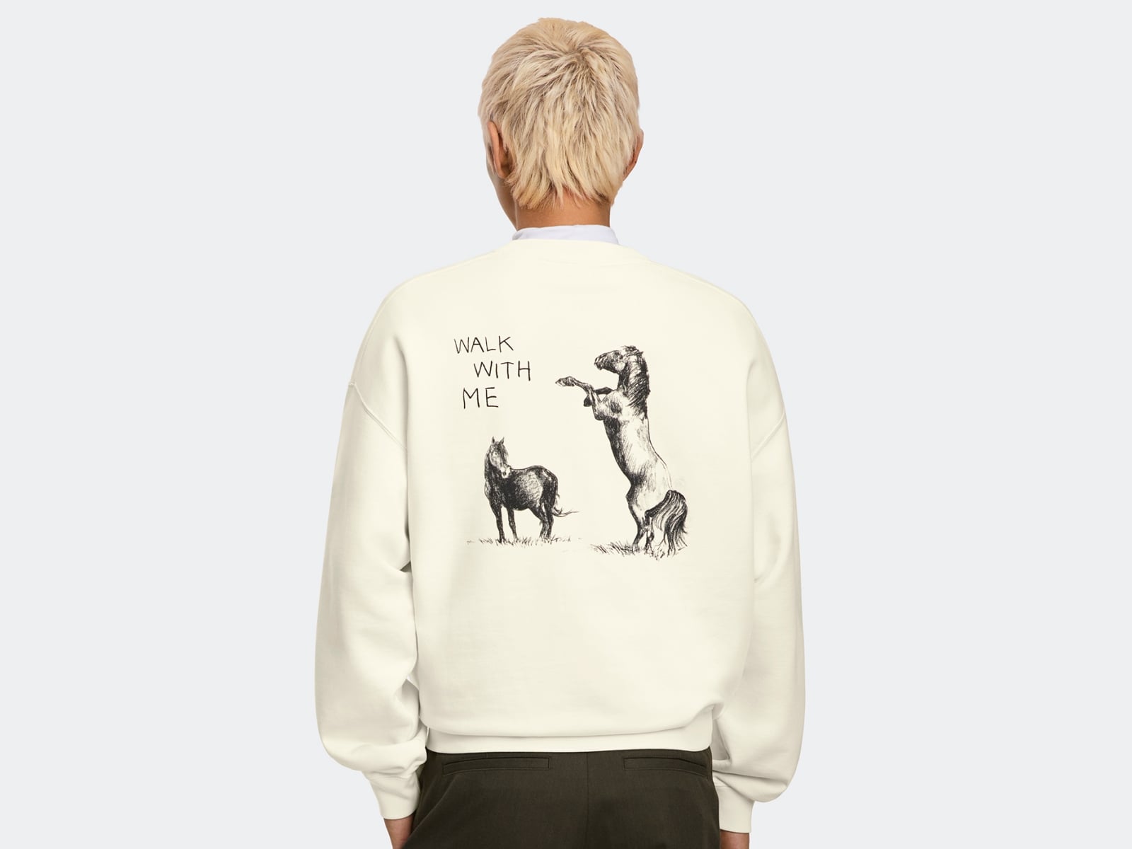 系列包括男款 Rove Crew 長袖 T-Shirt ,採用有機棉毛巾布精製而成,觸感細膩沉穩、表面平滑雅致,雙線縫製保持俐落版型;搭配細膩手繪筆觸描繪馬匹的動態,一匹佇立、一匹躍起,形成流動的視覺節奏。「WALK WITH ME」標語點題,傳遞並肩前行、探索未知的精神,讓單品在簡約之中蘊含藝術故事性。男款 Vantage 短 T-Shirt 與女款 Roam 短 T-Shirt,選用中磅數有機棉針織布料,兼具紮實結構與細緻柔滑的親膚觸感。簡約俐落的剪裁,勾勒出自然優雅與當代時尚並存的輪廓。圖騰以細膩素描筆觸描繪馬匹行進於荒野之中,一前一後的構圖展現節奏與默契,寓意在歲序更迭之際、以穩健步伐開啟嶄新一年的前行力量;配色推出米白色、及象徵新春祝福的胭脂紅色,為年節穿搭注入從容而有力的風格態度。