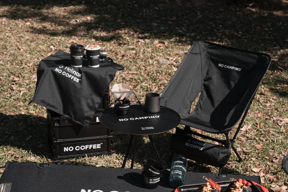 NO COFFEE 創立於 2015 年,被譽為「來福岡必訪的地標」。品牌跳脫傳統咖啡廳的經營框架,以 「Life With Good Coffee」 為核心理念,將咖啡與多元周邊商品結合,建立咖啡與生活之間的連結,讓即使不喝咖啡的人,也能挑選到符合自己風格與喜好的生活逸品。在迎來品牌十周年的重要里程碑之際,NO COFFEE 聯手韓國頂級戶外品牌 Helinox ,重磅推出「NO CAMPING」為主題聯名系列,推出一系列限定黑色露營單品,重新詮釋日常生活中的休息感度。 Helinox 以其聞名全球的輕量、高機能與卓越設計,深受全球戶外玩家與生活風格族群喜愛。雙方共同將戶外的愜意與自由,轉化為城市日常中的休憩儀式,打造出一系列極具收藏價值的限定單品,本次聯名商品皆為限量販售,數量有限,邀請您把握這難得的入手機會。