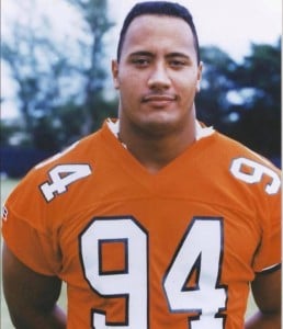 進入高中後,巨石強森的運動天分逐漸受到關注,他被美式足球教練招入校隊擔任防守要角,同時也活躍於田徑與業餘摔跤項目,展現全面體能實力。原本立志成為職業足球員的他,順利取得邁阿密大學全額獎學金,加入邁阿密颶風橄欖球隊,卻在 1991 年因傷錯過全國冠軍賽,位置被後來成為 NFL 球星的華倫・薩普取代,足球之路也因此出現轉折。