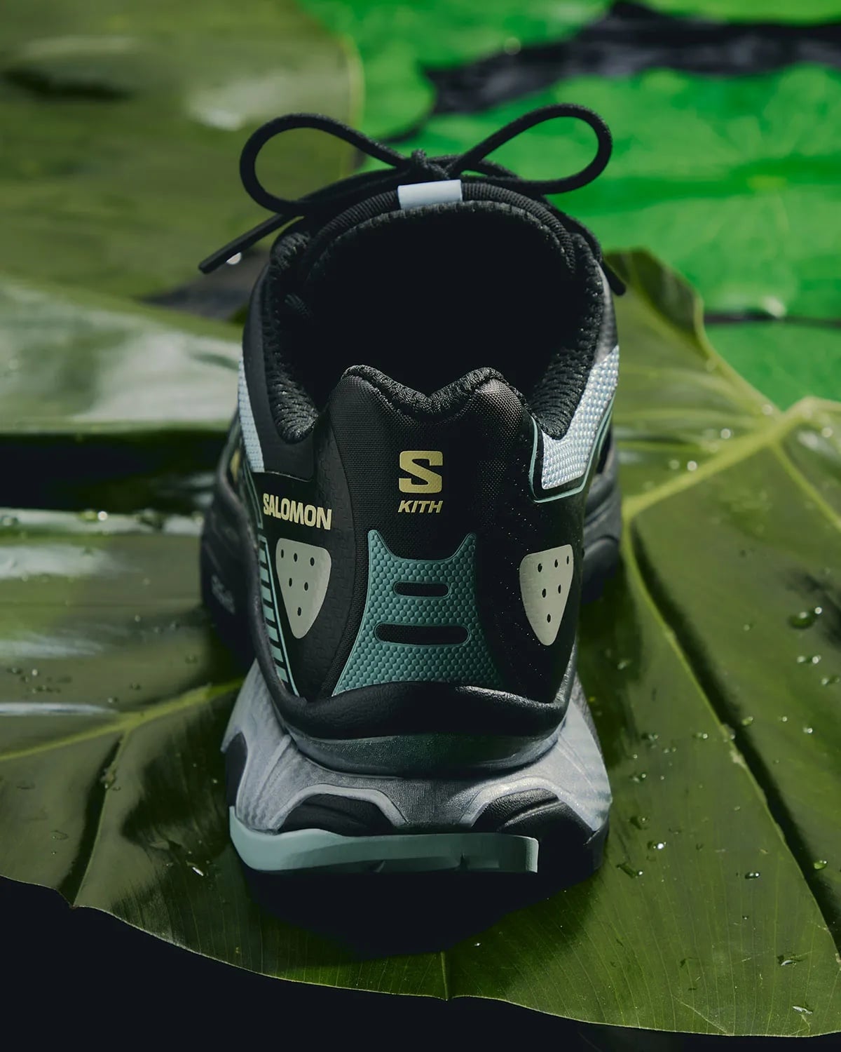 本次 Kith x Salomon 聯名系列共有兩款鞋型,XT-4K 最大特色在於鞋身側面醒目的「KITH」字樣標誌,讓人一眼就能辨識出這雙聯名鞋款的獨特身份,另外換上更耐用的 ripstop 鞋面材質,不僅提升耐磨性能,更配以漸層色底層細節與鞋舌上的專屬山系圖案,展現戶外風格的設計語彙。性能層面上,XT-4K 保留 Salomon 引以為傲的全掌 Agile Chassis Skeleton 結構及雙密度 EVA 緩震系統,確保無論在城市通勤還是崎嶇山徑都能提供穩定支撐與舒適腳感。