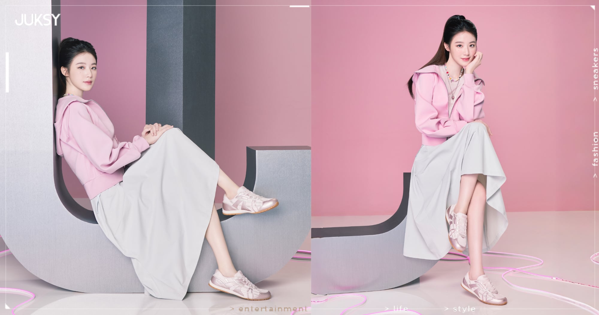在此次 RETRO LITE 形象拍攝中,舒華以自然、自信的狀態詮釋新世代的潮流風格。不同於舞台上的張力與光芒,她在 RETRO LITE 的演繹裡回到生活節奏,以簡約穿搭與俐落輪廓,展現薄底鞋款如何成為日常造型中最關鍵、卻最低調有力的存在。舒華呈現的不僅是鞋款本身,更是一種「把風格融入生活」的態度。透過她的詮釋,RETRO LITE 轉化為新世代對時尚的理解:不依賴繁複堆疊,而是用線條、比例與細節,讓極簡成為最直接、最有力量的風格表達。