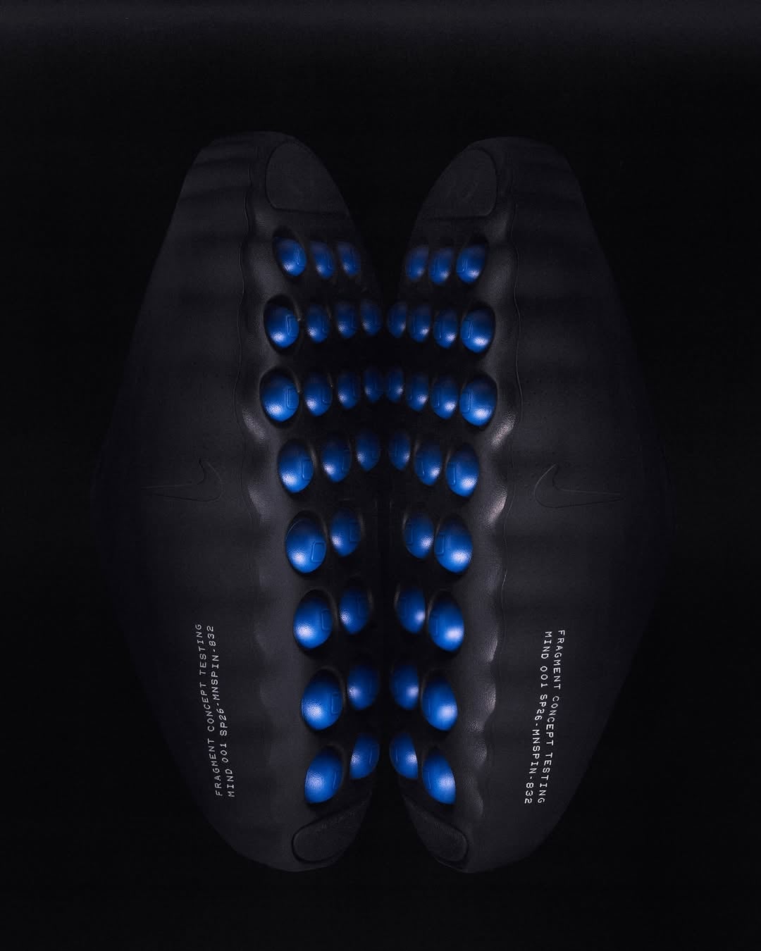 本次聯名系列整體設計延續 fragment design 一貫的低調美學,以黑色為主調,注入象徵藤原浩的「閃電藍」元素與標誌性閃電 Logo,視覺上內斂卻極具辨識度。除了 Mind 001 與 Mind 002 之外,此系列中最令人期待莫過於全新鞋款 Air Liquid Max,核心科技由立體輪廓的 Air 氣墊單元構成,主打「踩在空氣上」的輕盈腳感,氣墊之間更加入策略性鏤空結構,有效減輕重量並提升足部靈活度,是 Nike 在緩震領域的全新突破。