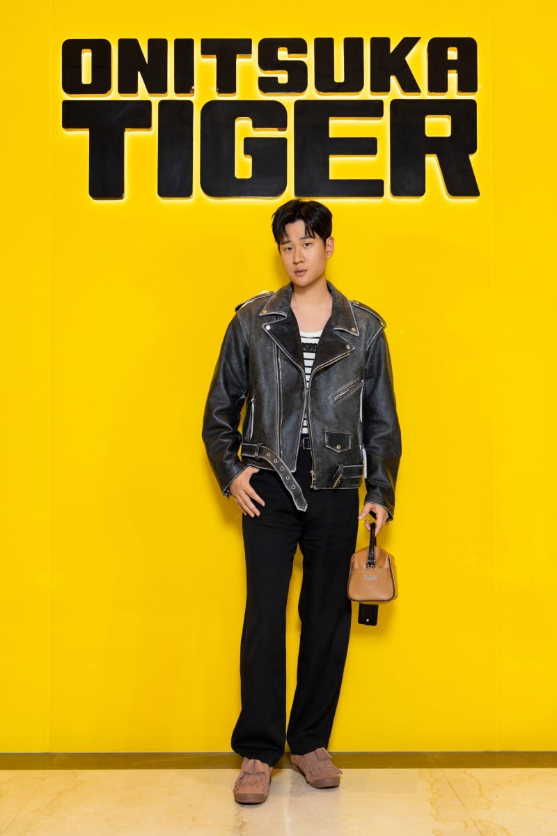 開幕當日,歌手周興哲以極簡俐落的輪廓演繹 Onitsuka Tiger 2026 米蘭時裝週的都會潮流語彙。身穿以牛皮仿舊處理打造的黑色騎士夾克,搭配寬鬆剪裁的黑色長褲,透過材質層次與輪廓比例展現率性風格,並以棕色 MEXICO 66 FRINGE 鞋款作為造型亮點。鞋面結合三層流蘇與穗飾設計,隨步伐自然擺動,為整體造型注入動態節奏與復古質感,展現品牌經典鞋型於當代語境下的再詮釋。