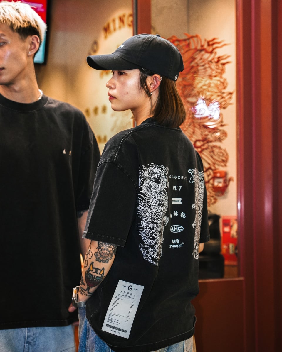 呼應本次於台北 PLOT 舉行的期間限定 Pop-up,GROCERY 特別推出全新圖案 T-shirt,將香港街頭文化轉化為可被穿上的載體,成為城市之間交流的具象媒介。此款 T-shirt 採用品牌標誌性的 Washed Tee 製作,以厚實棉料結合經典洗水工藝,呈現自然褪色的復古質感,同時保有紮實手感與高度耐穿性,延續 GROCERY 一貫的日常實穿語言。