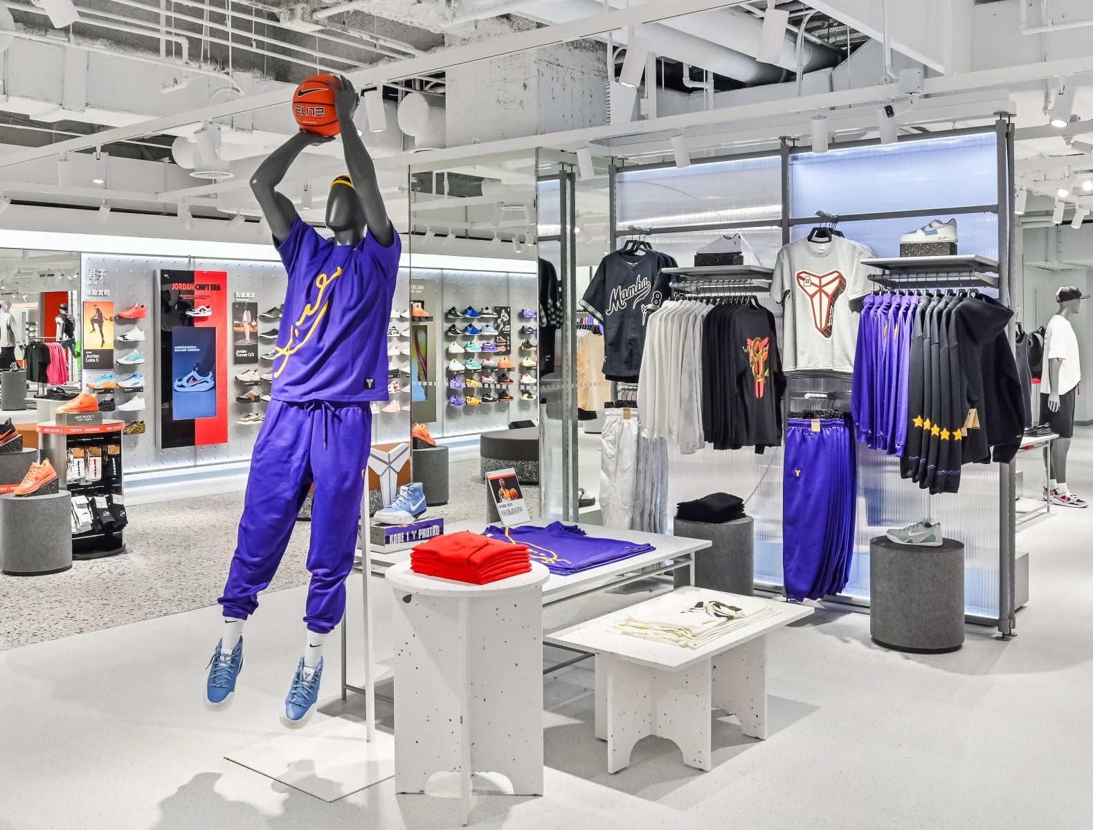 為向籃球傳奇 Kobe Bryant 致敬,於 Nike 臺北品牌體驗店籃球區域中特別設置 Kobe Bryant 系列區域,展示包含籃球鞋款與服飾在內的經典與全新款式,呈現在性能、設計與創新科技上的突破,讓籃球愛好者可以近距離感受 Kobe Bryant 對球場的熱忱與對極致運動表現的追求。此區域不僅致敬經典,也鼓勵每一位運動員在籃球場上挑戰自我,延續曼巴精神的無畏無懼。