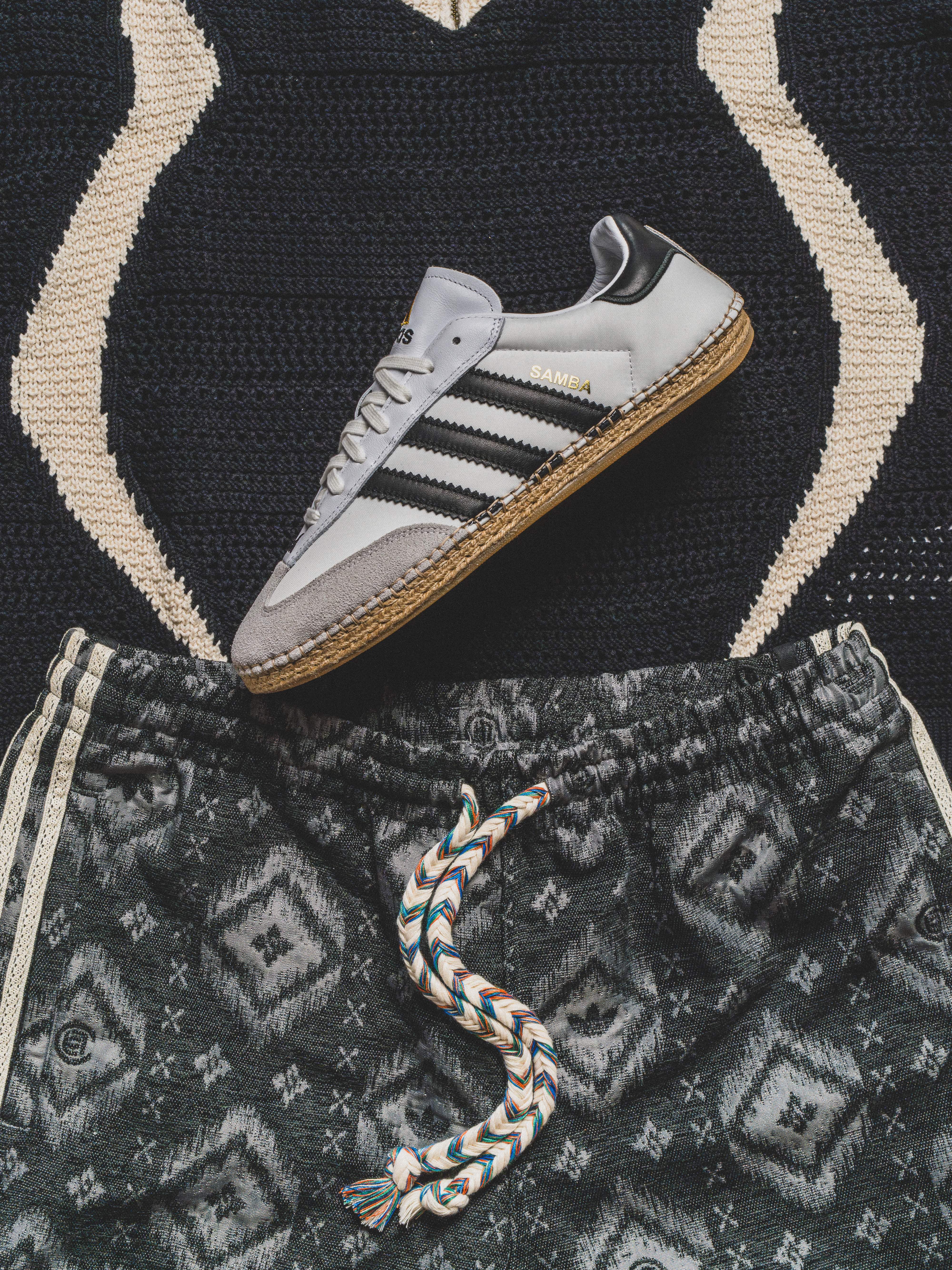 此外,CLOT Samba 延續同樣設計語彙,將 Samba Millennium 鞋面結合麂皮鞋頭與拉菲草編織鞋底,透過材質對比與層次堆疊,為這雙經典鞋款注入煥然一新的風格表現。