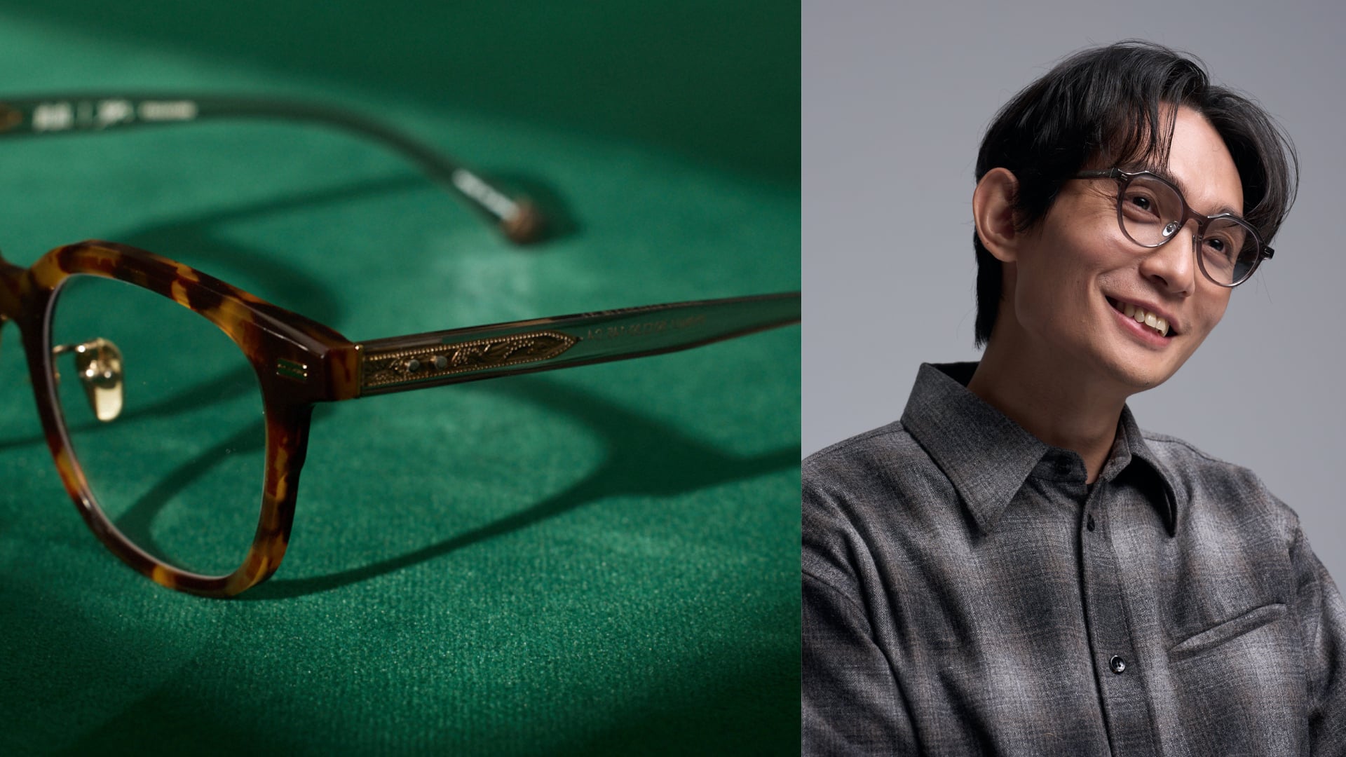 第三條工藝路線則回歸自然溫度。品牌標誌性的竹嵌工藝由職人手工將天然竹材嵌入鏡腳或圈面,竹節天然的紋路與獨一無二的形態,柔化了工業製程的冷硬感,讓每一次配戴都成為與匠心手作的無聲對話。三種材質路線並行,構成了這個聯名系列豐富的工藝層次。