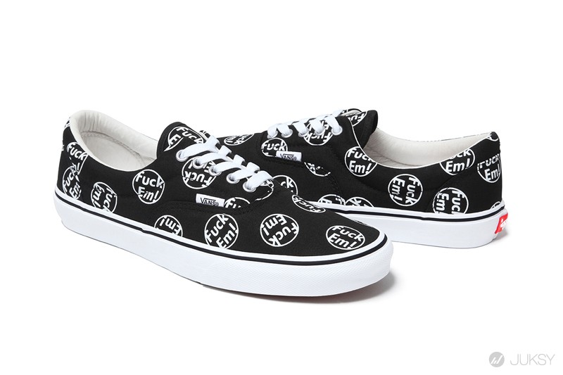 繼秋季聯名系列之後,Supreme 近日再度攜手 VANS 推出最新的秋冬合作鞋款。該系列以 VANS 經典的 Era 和 Sk8-Hi 為藍本,分別打造了低幫、高幫兩種鞋款,紅、黑配色和通體 Fuck Em! 印花圖案彰顯著不羈的街頭風格。鞋面上搭配使用麂皮和皮革,同色系的縫線也幫忙勾勒出流暢的鞋身線條。
